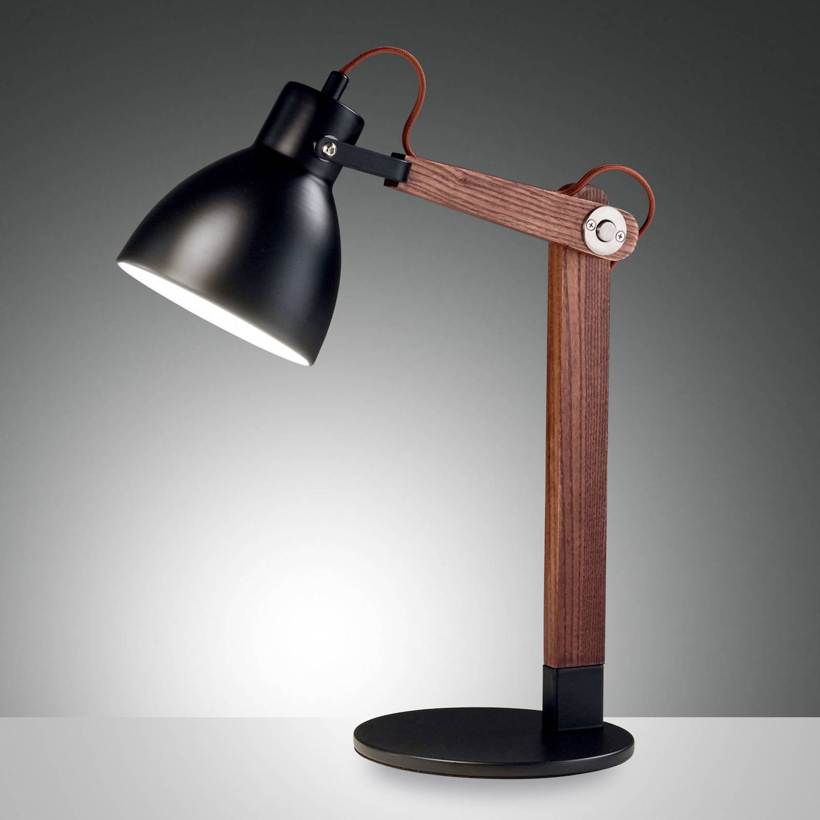 Fabas Luce Stolní lampa Sveva ze dřeva, černá/ořech, Pracovna / kancelář, kov, dřevo, E27, 40W, K: 73cm