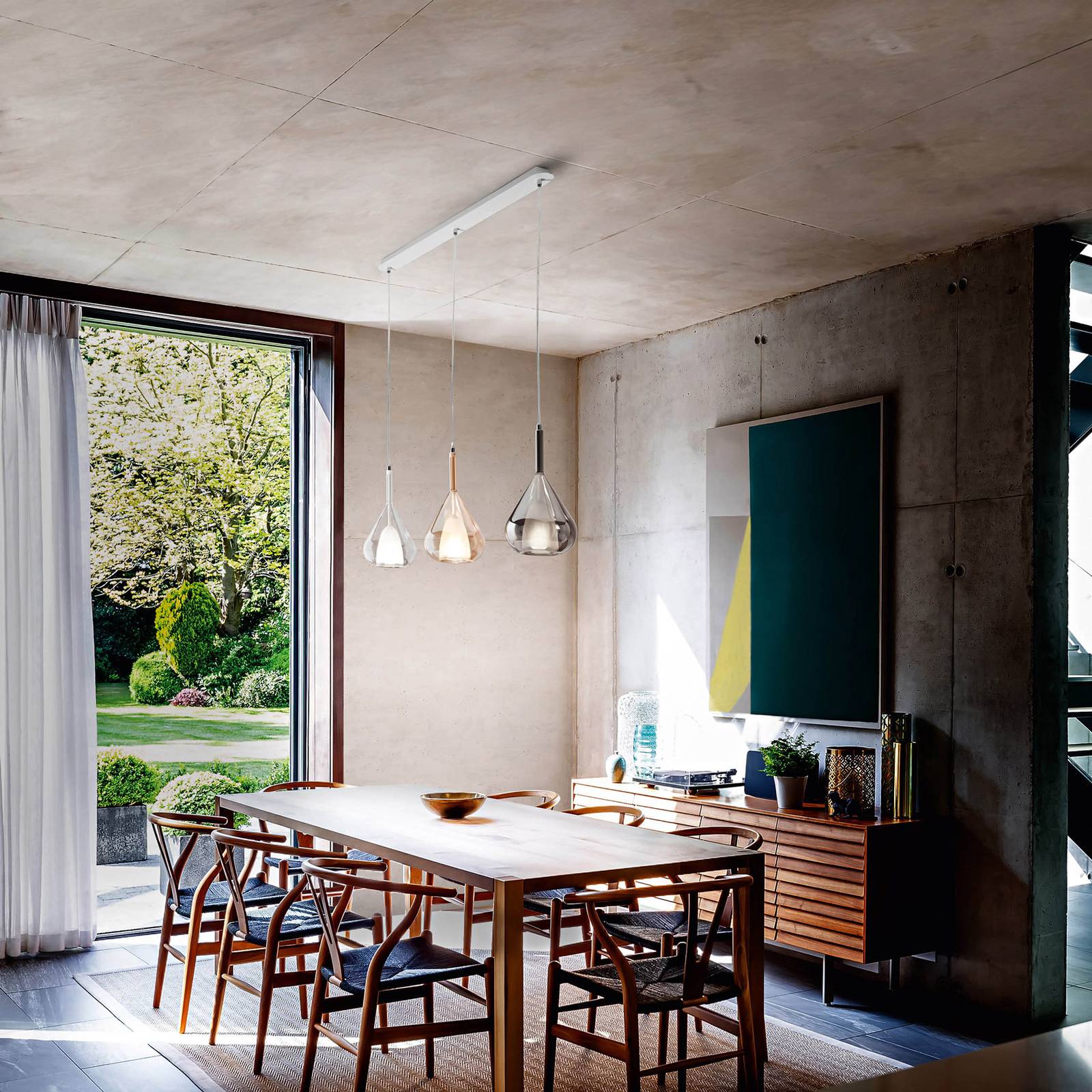 Fabas Luce Závěsné světlo Lila ze skla, třížár. dlouhé, Obývací pokoj / jídelna, borosilikátové sklo, kov, E27, 40W, P: 103 cm, L: 20 cm