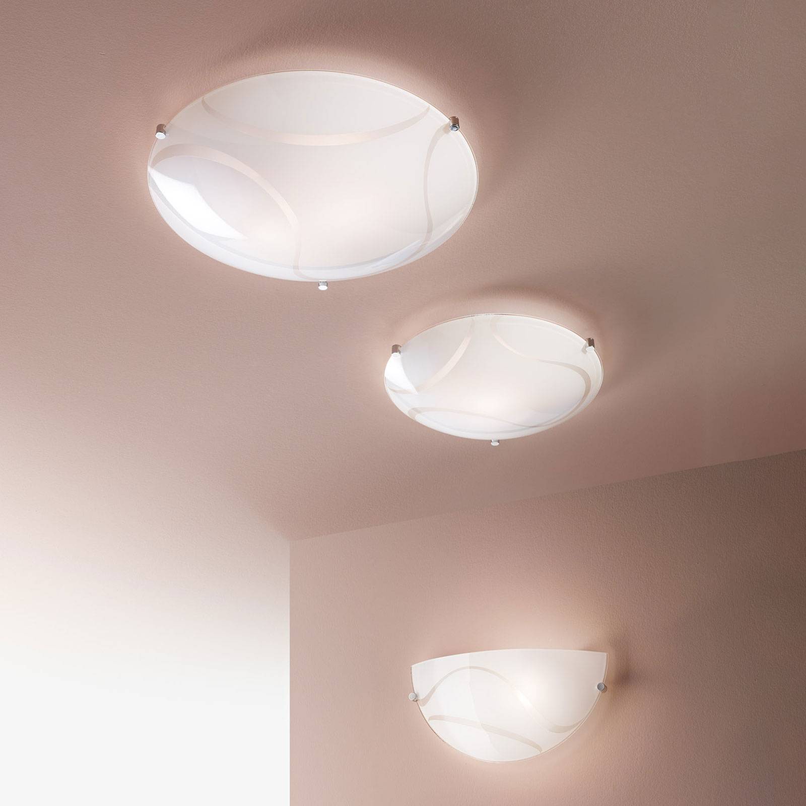 Fabas Luce Stropní a nástěnné světlo PLAZA ze skla 41 cm nikl, Obývací pokoj / jídelna, kov, sklo, E27, 42W, K: 10cm