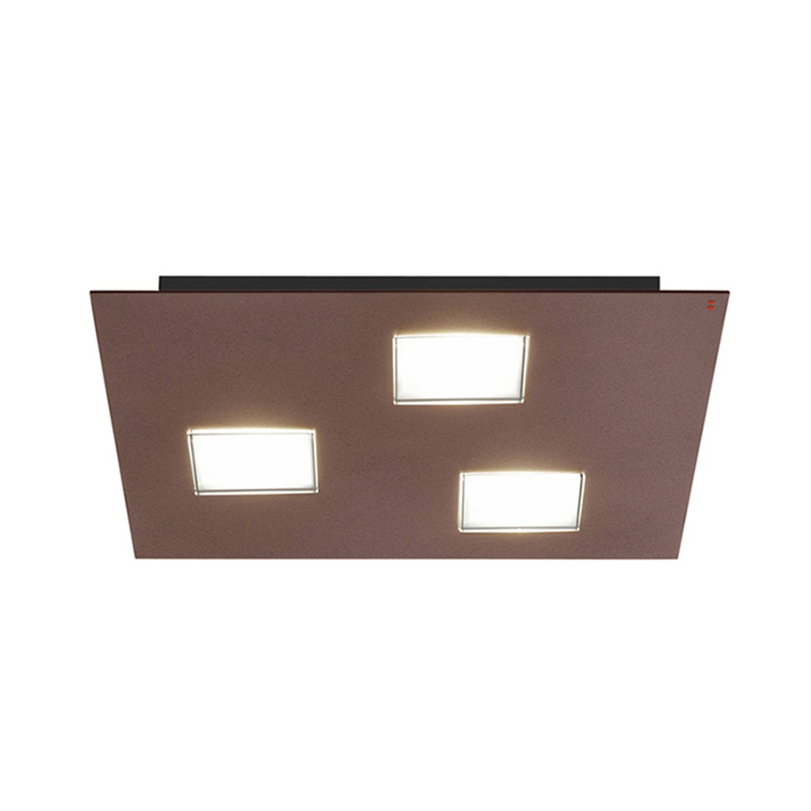 Fabbian Quarter – hnědé LED stropní svítidlo 3zdr, Obývací pokoj / jídelna, hliník, polykarbonát, 4.5W, P: 30 cm, L: 30 cm, K: 3.5cm