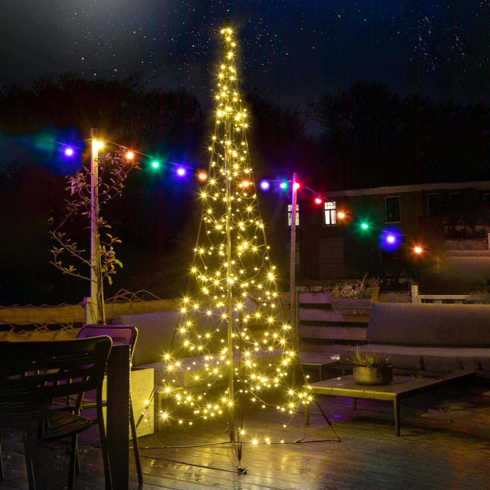Fairybell Vánoční stromek s tyčí, 3 m, blikající, pružné textilní popruhy, L: 180 cm, K: 300cm