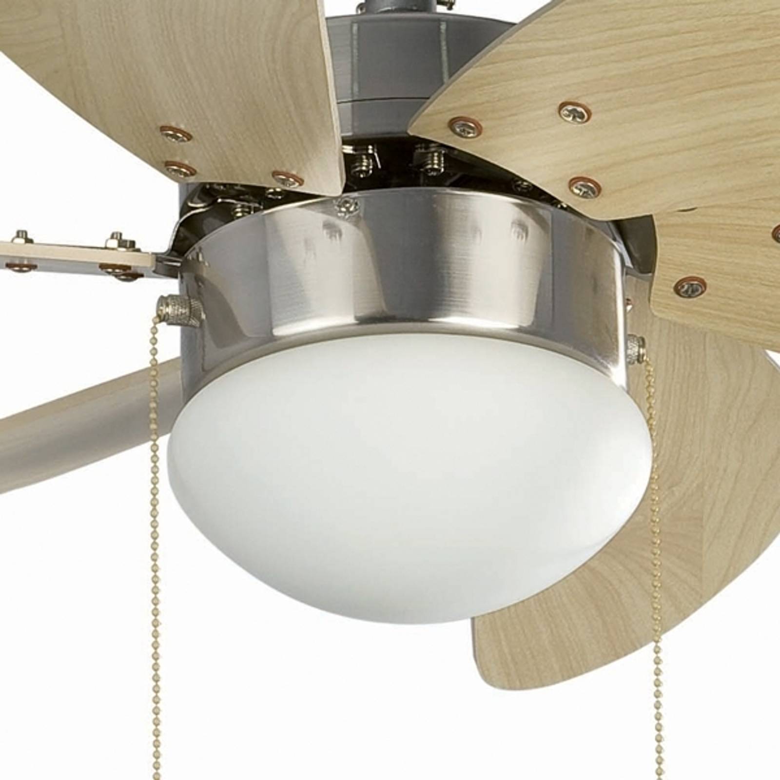 FARO BARCELONA Stropní ventilátor Palao S se světlem, nikl matný, Kuchyň, kov, dřevo, sklo, E14, 40W