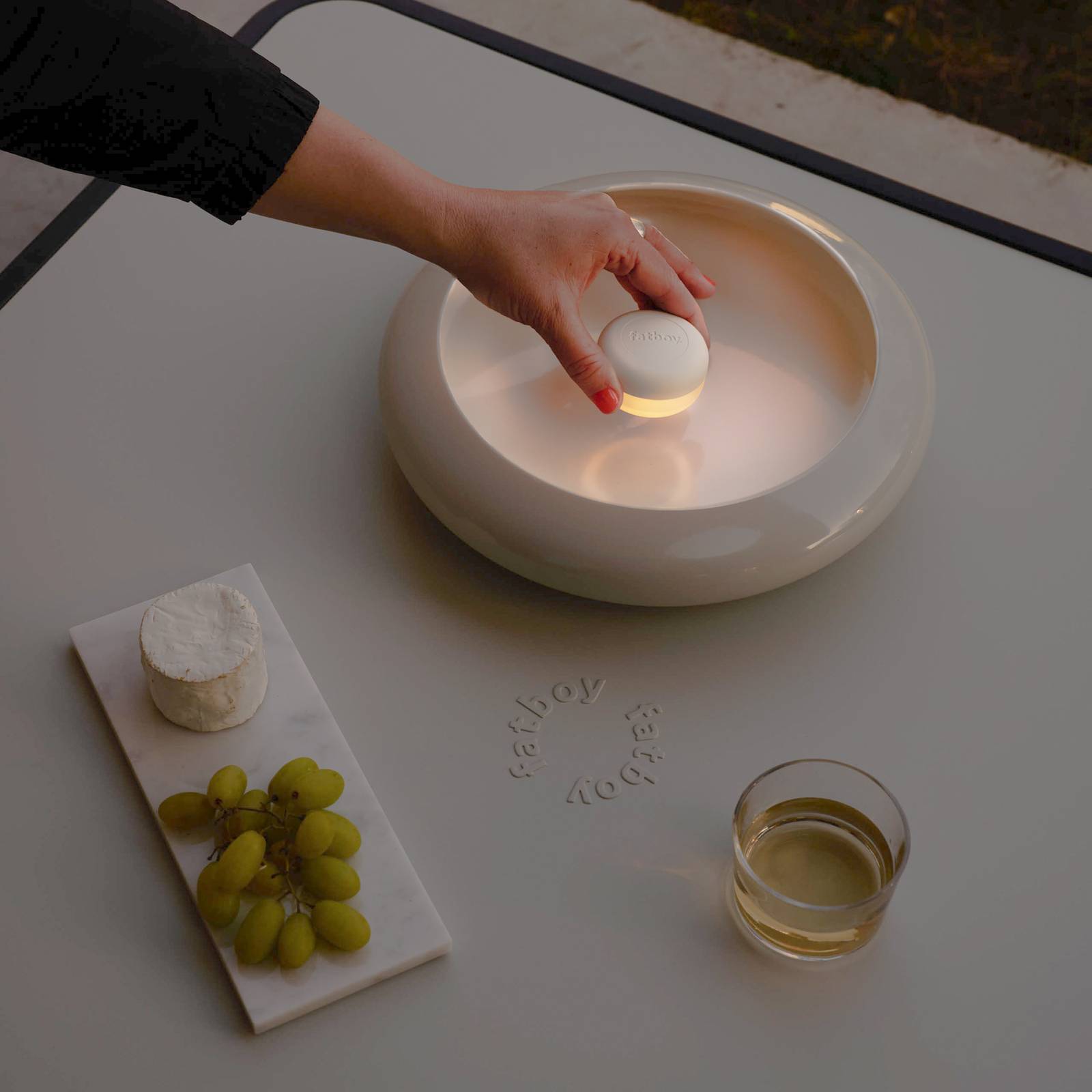 Fatboy Nabíjecí závěsné světlo Chap-O LED, černé, stmívatelné, IP55, Ocel, plast ABS, silikon, 0.22W