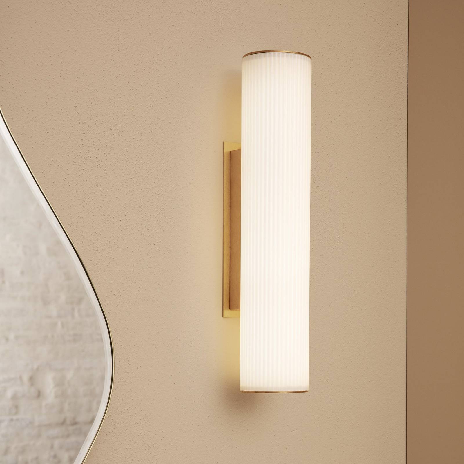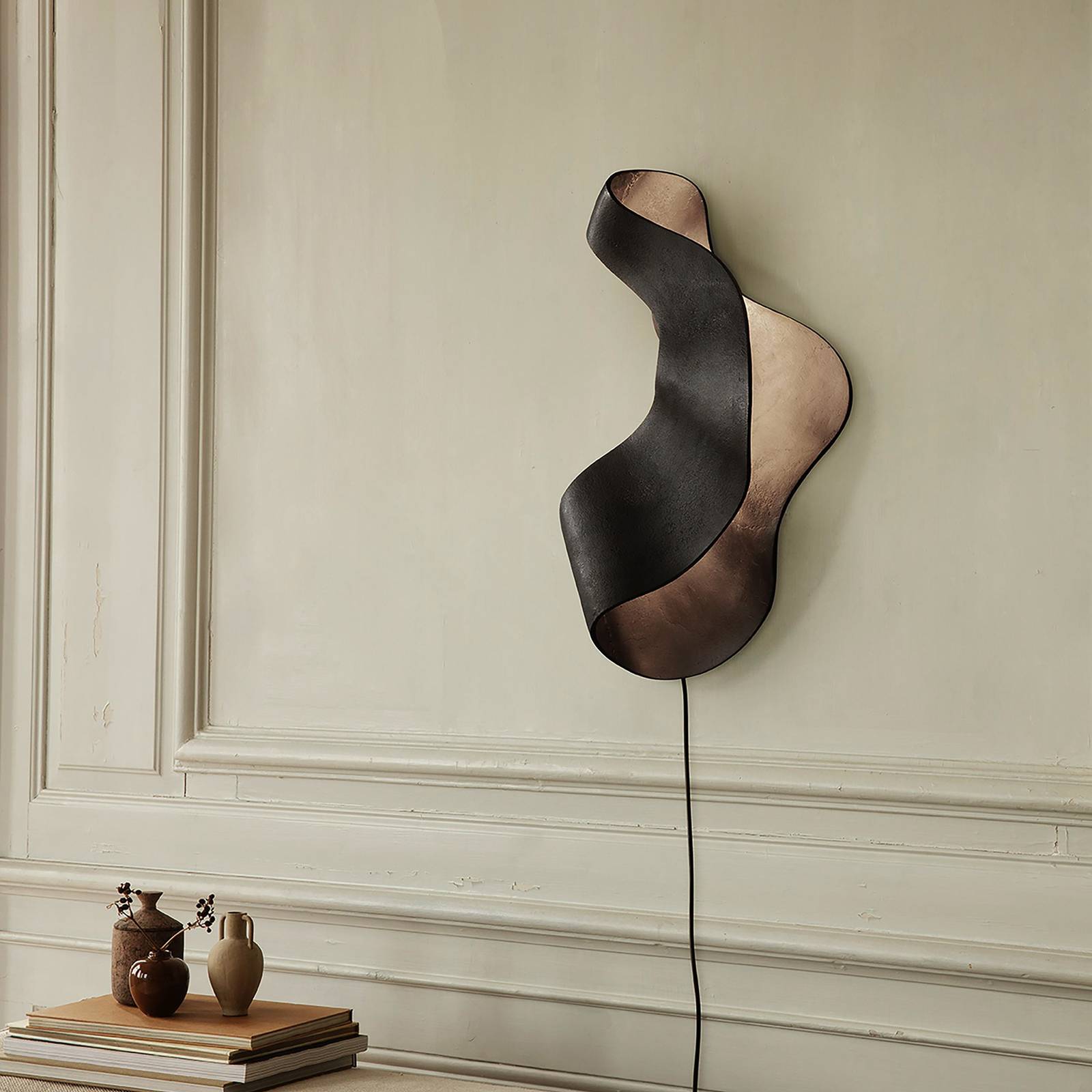 ferm LIVING LED nástěnné svítidlo Oyster, hliník, 60 cm, zástrčka, Obývací pokoj / jídelna, Patinovaný hliník, 8W, L: 33.5 cm, K: 60cm