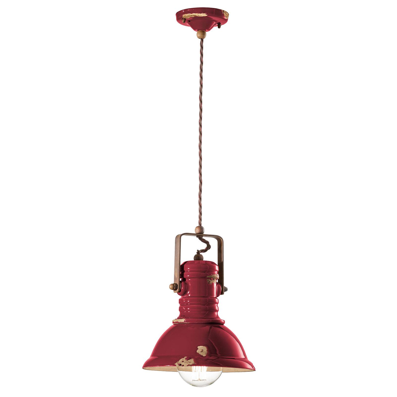 Ferroluce Závěsné svítidlo C1691 v bordó průmyslovém designu, Obývací pokoj / jídelna, Keramika, kov, E27, 53W, K: 30cm