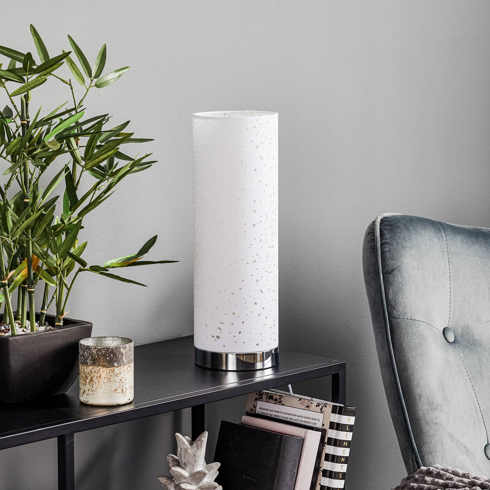 FISCHER & HONSEL Stolní lampa Thor, výška 35 cm, bílá/chrom, Obývací pokoj / jídelna, kov, textil, E14, 40W, K: 35cm