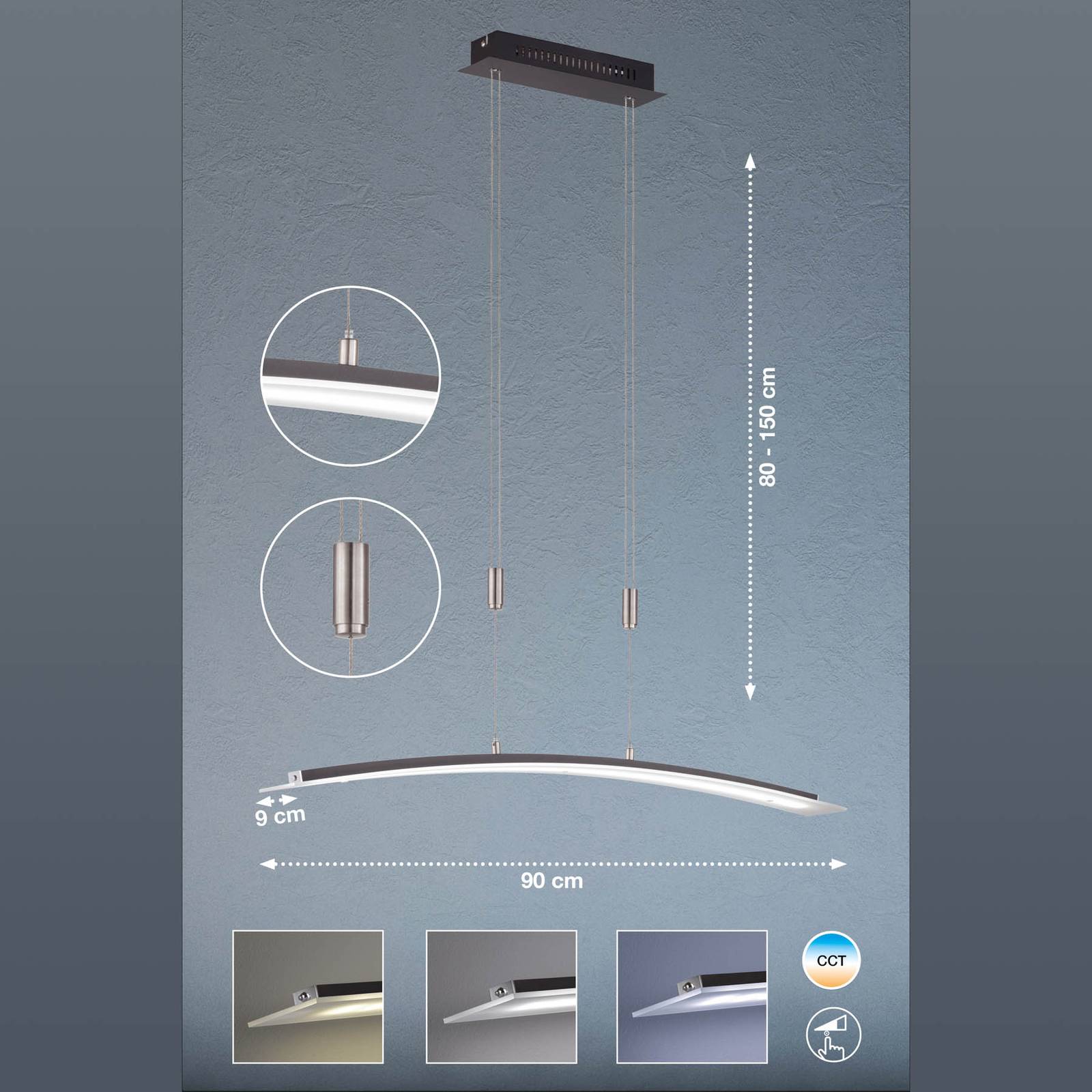 FISCHER & HONSEL LED závěsné světlo Metis stmívací CCT, černá, 90cm, Obývací pokoj / jídelna, kov, akryl, 19W, P: 90 cm, L: 9 cm