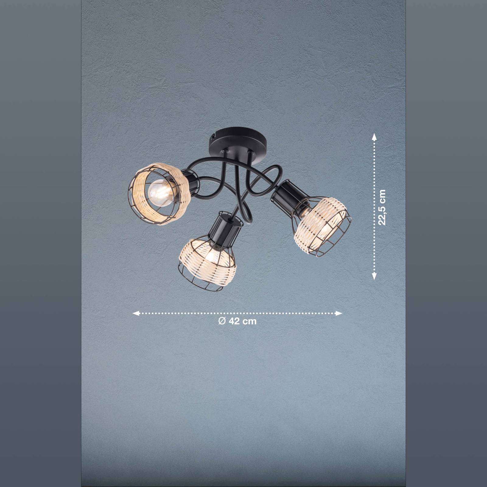 FISCHER & HONSEL Stropní bodové osvětlení Straw rattan, tři zdroje, Obývací pokoj / jídelna, kov, ratan, E14, 25W, K: 22.5cm