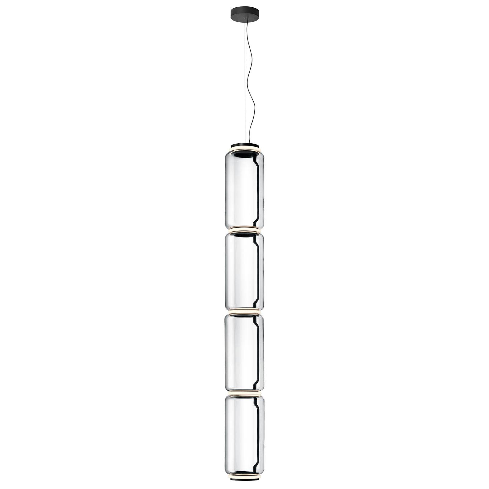 FLOS Noctambule LED závěsná lampa 4 High Cylinders, Obývací pokoj / jídelna, sklo, hliník, 45W, K: 216cm