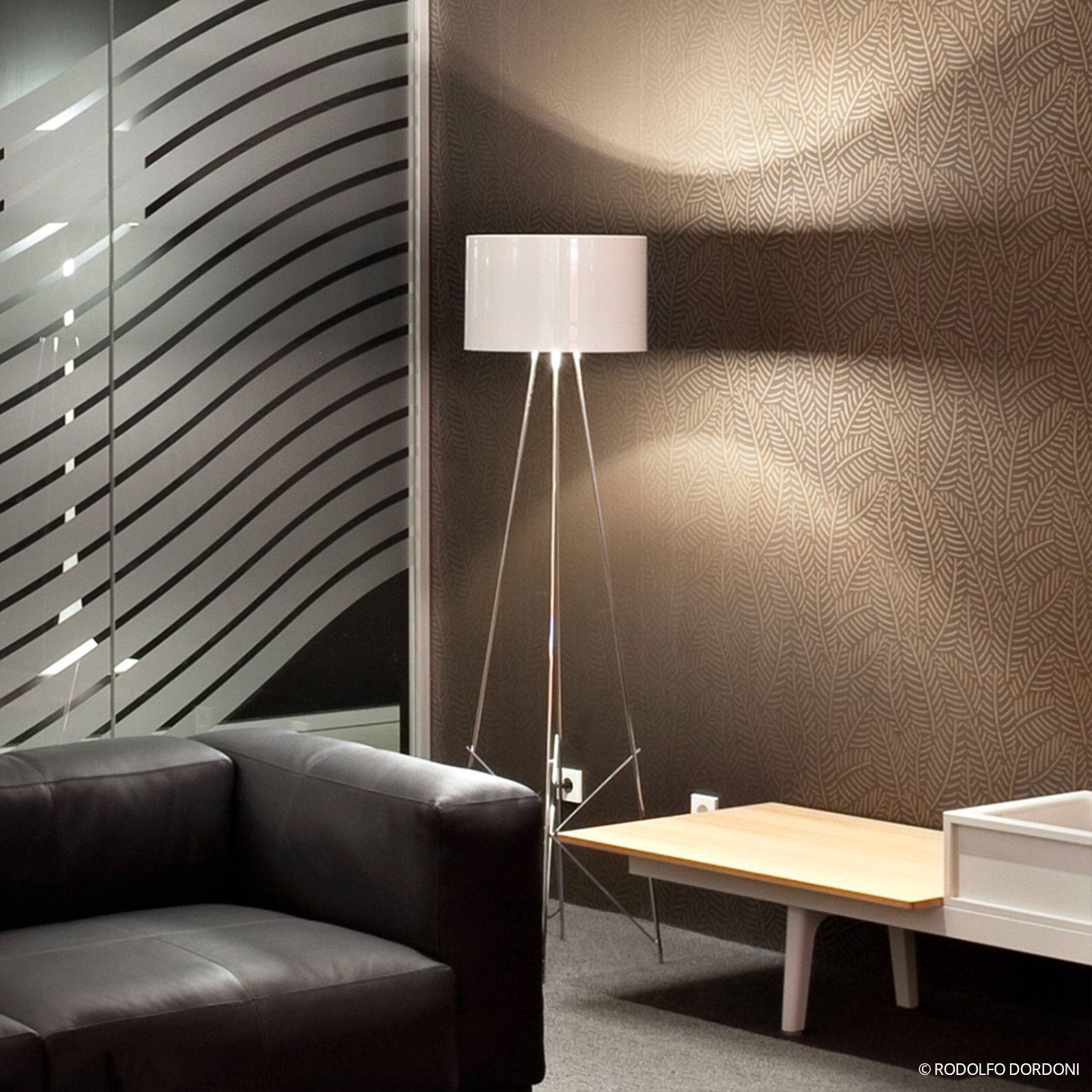 FLOS RAY F2 – Stojací lampa s bílým stínidlem, Obývací pokoj / jídelna, Ocel, E27, 205W, K: 171cm