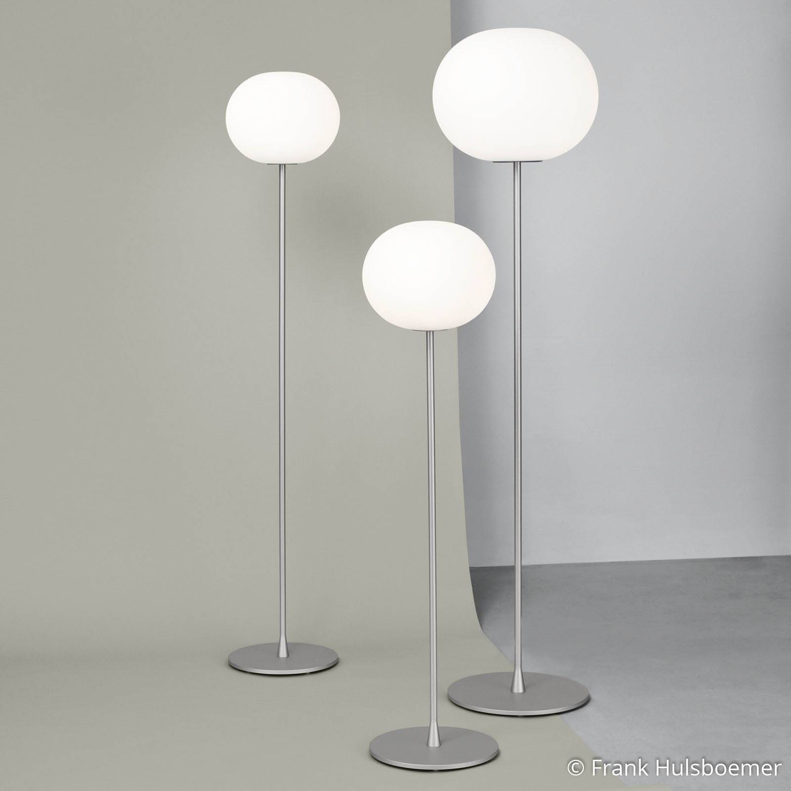 FLOS Glo-Ball Floor 3 stojací lampa stříbrná matná, Obývací pokoj / jídelna, sklo, ocel, E27, 205W, K: 185cm