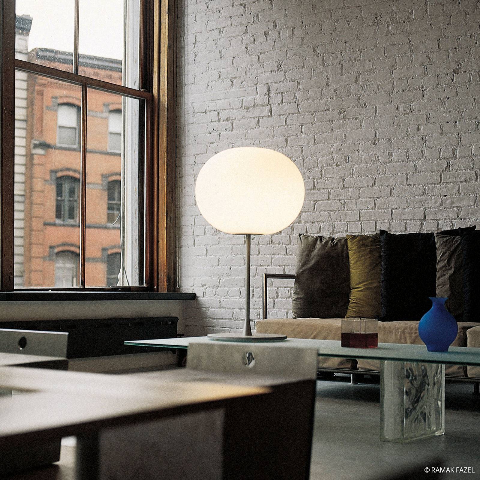 FLOS Glo-Ball Table 1 stolní lampa, stříbrná matná, Obývací pokoj / jídelna, sklo, ocel, E27, 150W, K: 60cm