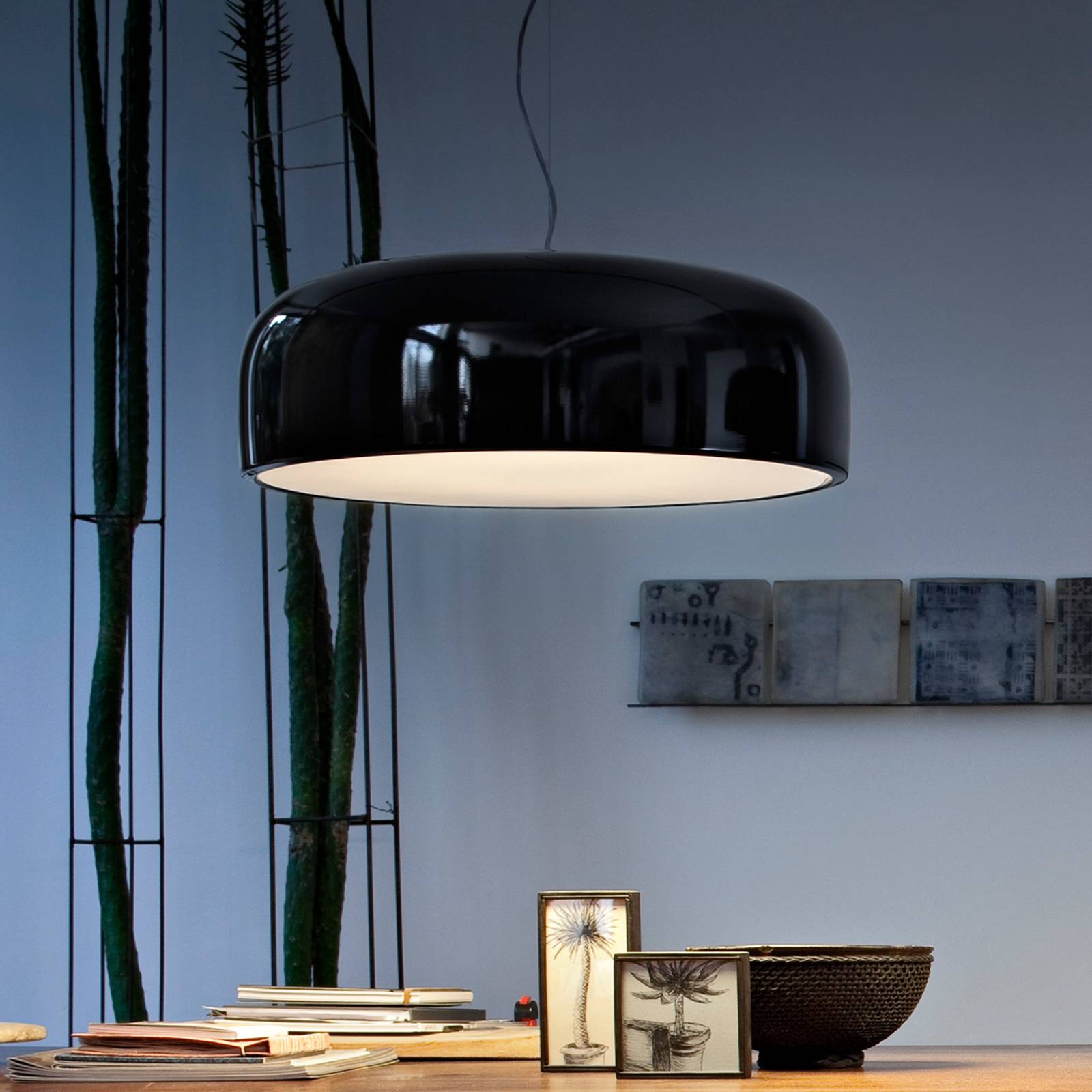 FLOS Smithfield S – závěsné světlo černé lesklé, Obývací pokoj / jídelna, hliník, plast, ocel, E27, 70W, K: 21.5cm