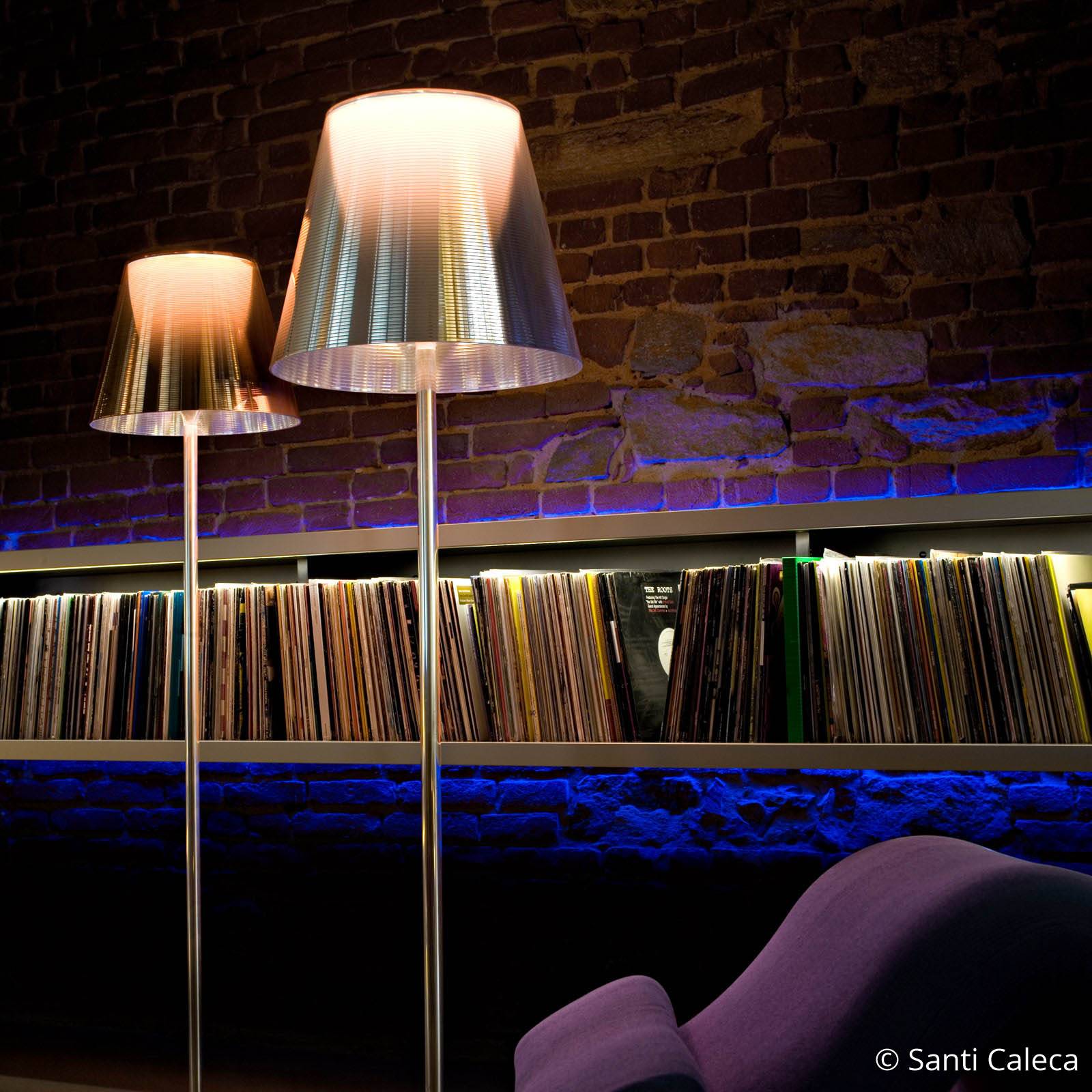 FLOS KTribe F2 stojací lampa, kouřově šedá, Obývací pokoj / jídelna, PMMA, polykarbonát, hliník, E27, 150W, K: 162cm