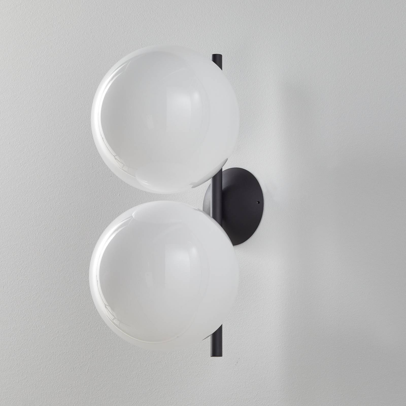 FLOS IC C/W1 Double nástěnné světlo černé Ø 20 cm, Obývací pokoj / jídelna, ocel, sklo, E14, 8W, K: 42cm