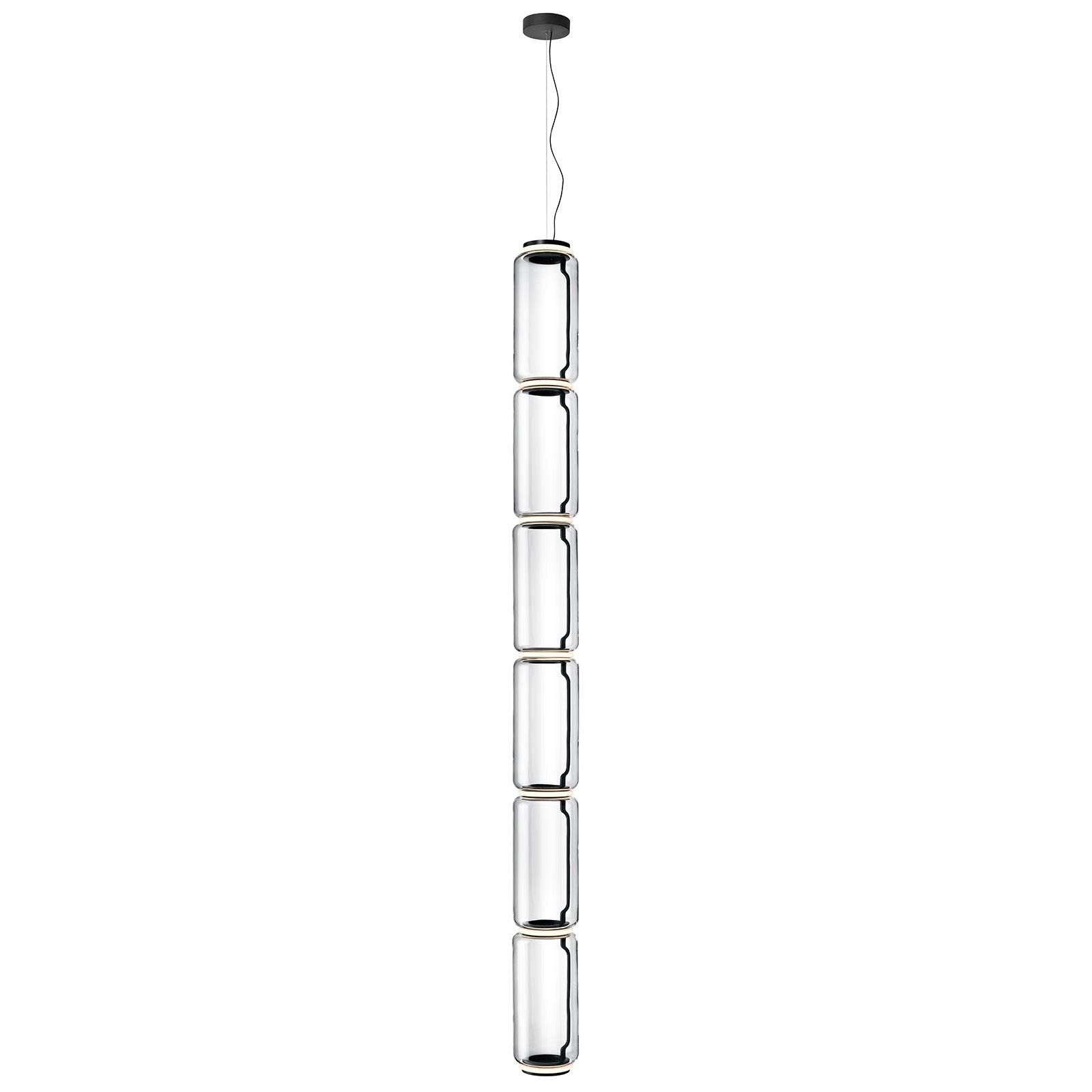 FLOS Noctambule LED závěsná lampa 6 High Cylinders, Obývací pokoj / jídelna, sklo, hliník, 63W, K: 322cm