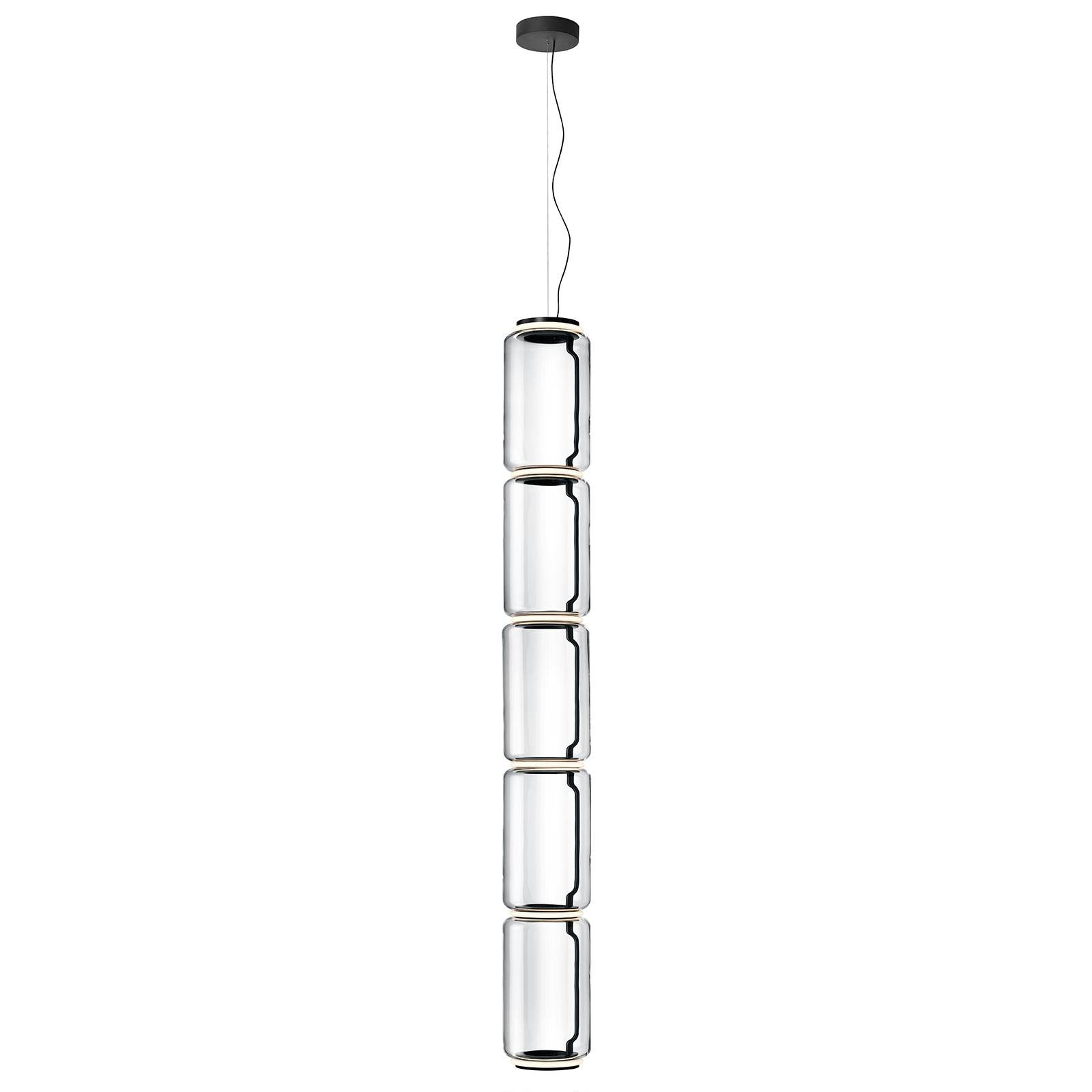 FLOS Noctambule LED závěsná lampa 5 Low Cylinders, Obývací pokoj / jídelna, sklo, hliník, 54W, K: 229cm