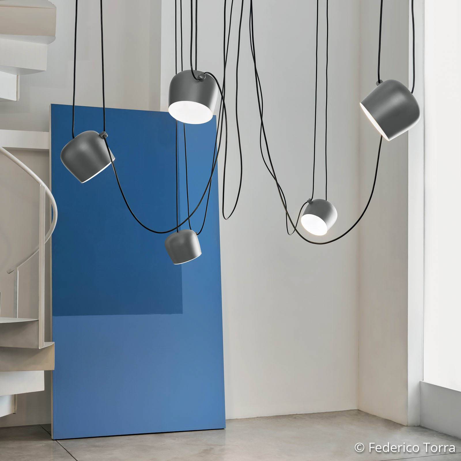 FLOS Aim LED závěsné světlo light silver eloxované, Obývací pokoj / jídelna, hliník, polykarbonát, ABS, 16W, K: 21.1cm