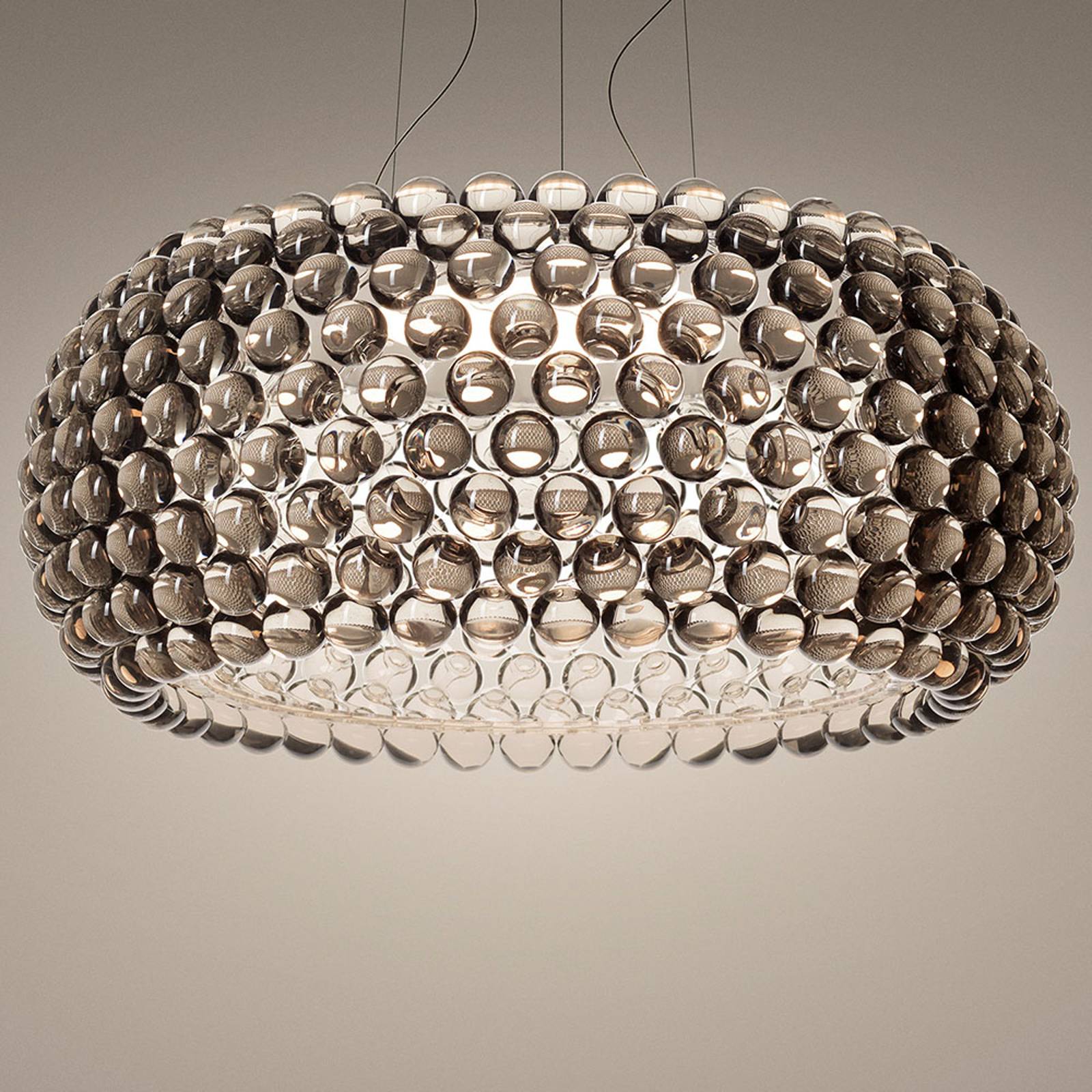 Foscarini Caboche Plus Grande závěsné stmívač šedá, Obývací pokoj / jídelna, foukané opálové sklo, PMMA plast, ocel, hliník, 28W, K: 28cm