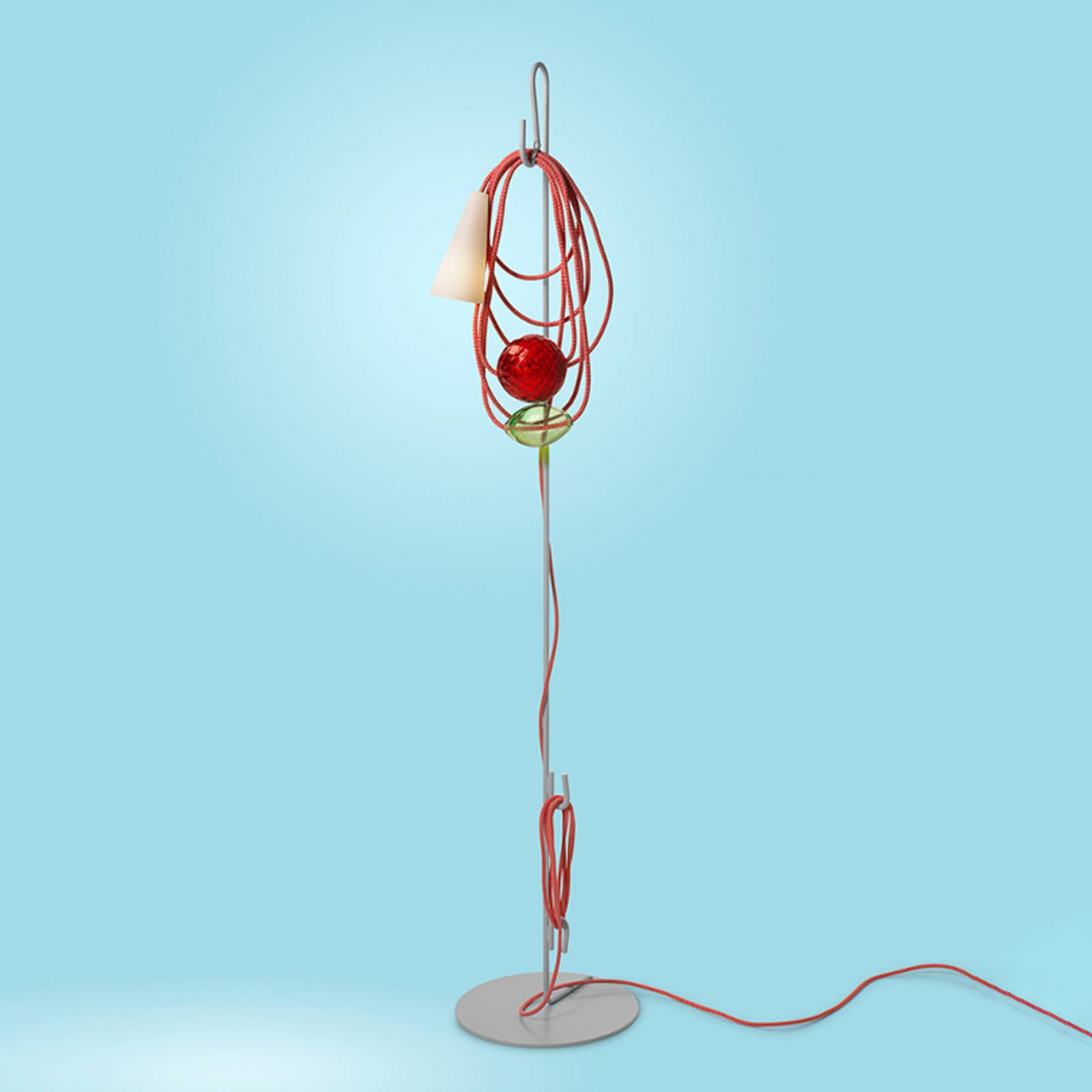 Foscarini Filo LED stojací lampa, Emerald King, Obývací pokoj / jídelna, porcelán, foukané sklo, lakovaný kov, textil, G9, 4W, K: 152cm
