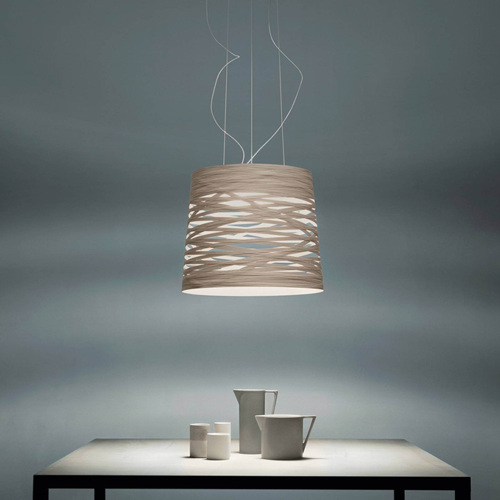 Foscarini Tress grande LED závěsné světlo, šedá, Obývací pokoj / jídelna, kompozitní materiál ze skleněných vláken, kov pochromovaný, hliník, 35W, K: 41cm
