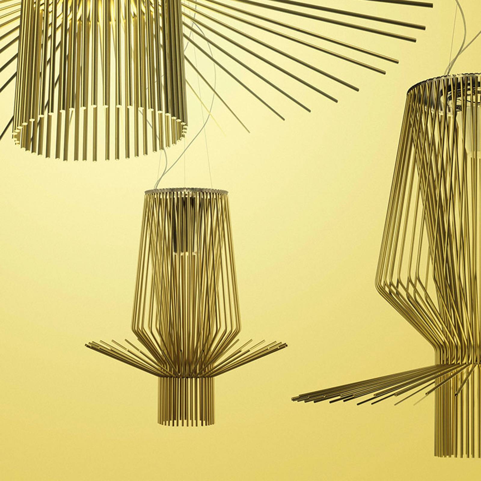 Foscarini Allegretto Assai závěsné světlo, zlatá, Obývací pokoj / jídelna, lakovaný hliník, pochromovaný kov, E27, 12W, K: 87cm
