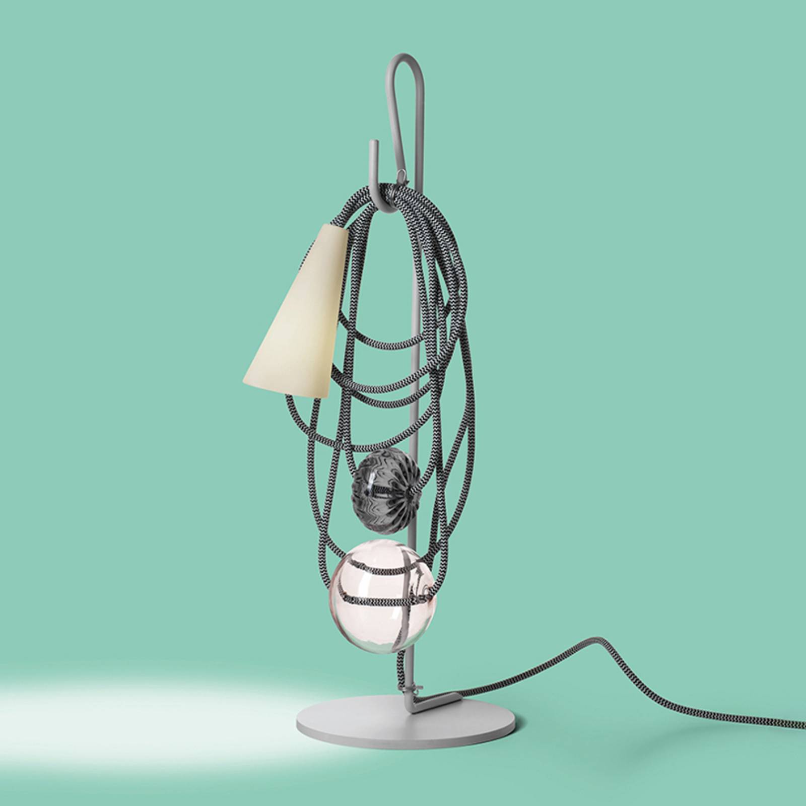 Foscarini Filo LED stolní lampa, Amethyst Queen, Obývací pokoj / jídelna, porcelán, foukané sklo, lakovaný kov, textil, G9, 4W, K: 58.5cm