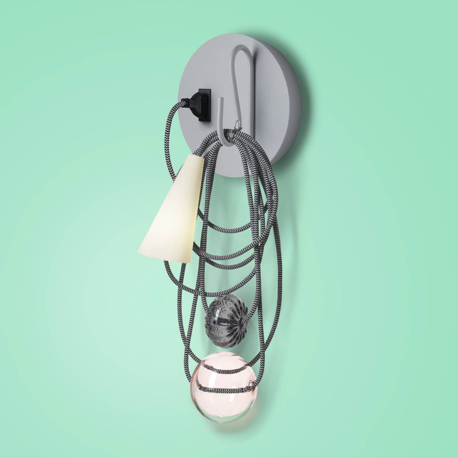 Foscarini Filo LED nástěnné světlo, Amethyst Queen, Obývací pokoj / jídelna, porcelán, foukané sklo, lakovaný kov, textil, G9, 4W, L: 23 cm, K: 52cm