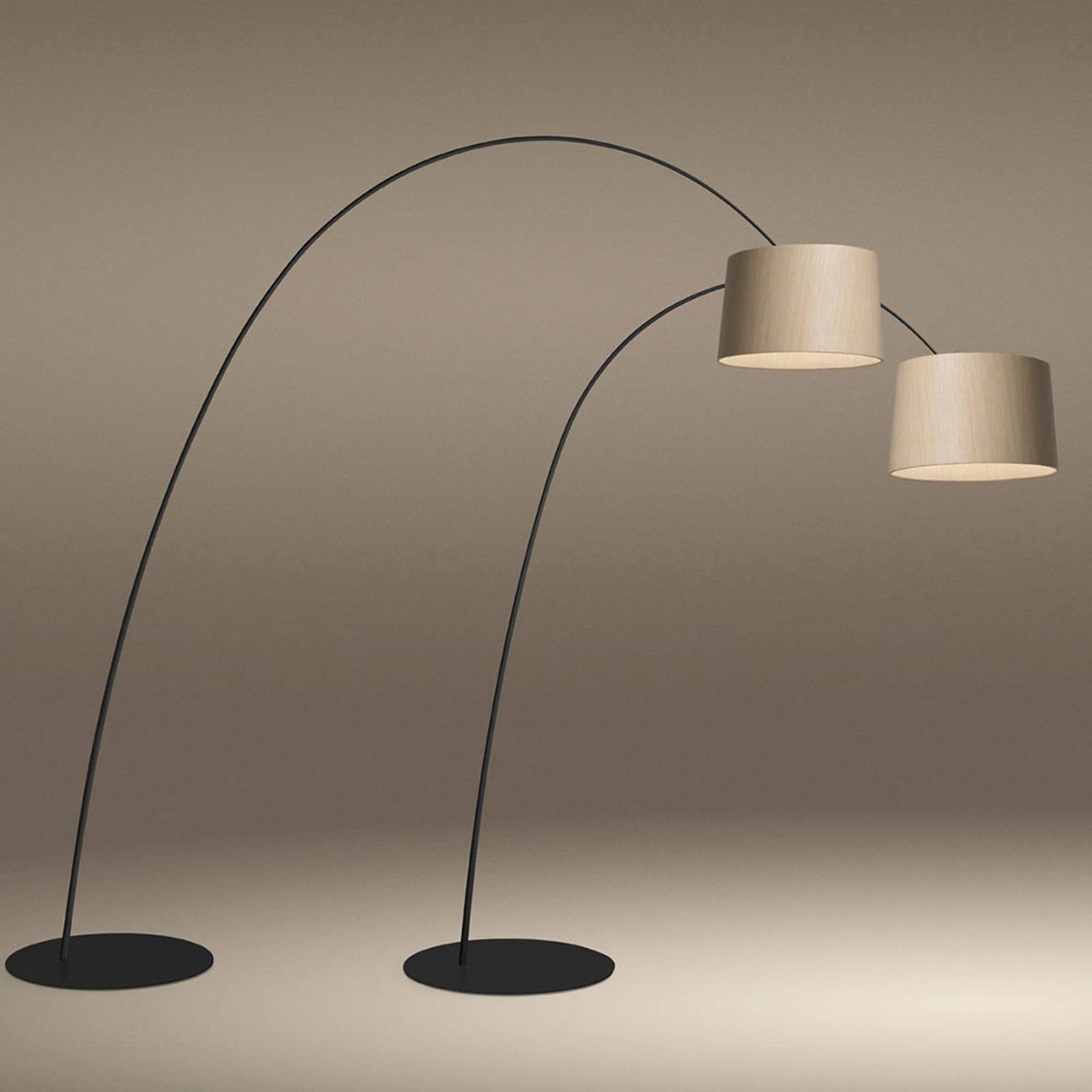 Foscarini TwiggyWood MyLight stojací lampa černá, Obývací pokoj / jídelna, javorové dřevo bělené, kompozitní materiál ze skleněných vláken, plast, hliník, 28W, K: 223.5cm