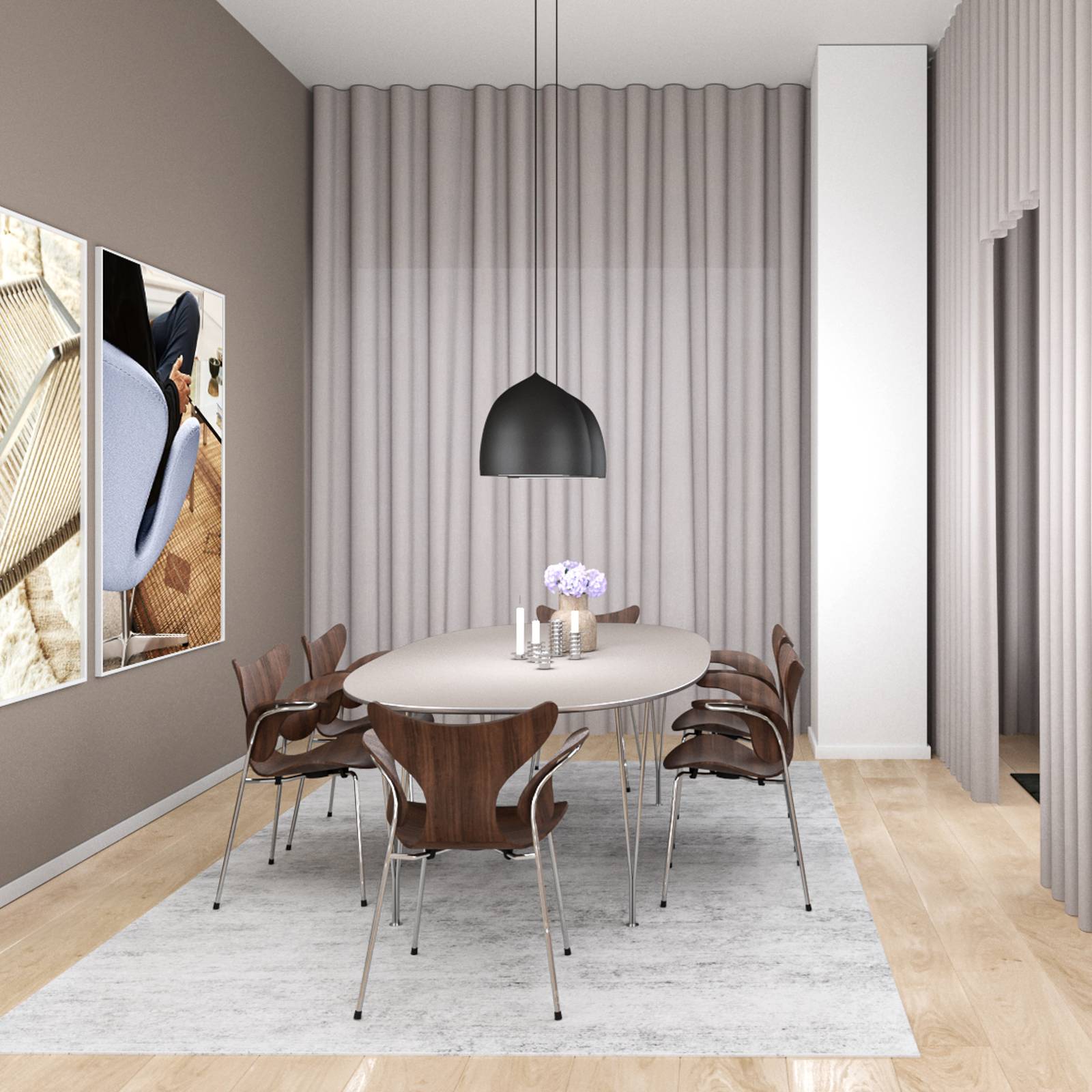 FRITZ HANSEN Závěsné svítidlo Calabash P2, šedá matná, Obývací pokoj / jídelna, Hliník, E27, 46W, K: 30.5cm