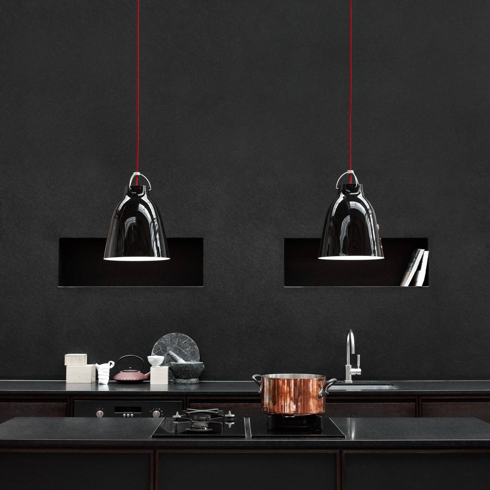 FRITZ HANSEN Caravaggio P3 lesklá černá/černá, Obývací pokoj / jídelna, Hliník, ocel, E27, 100W, K: 51.6cm