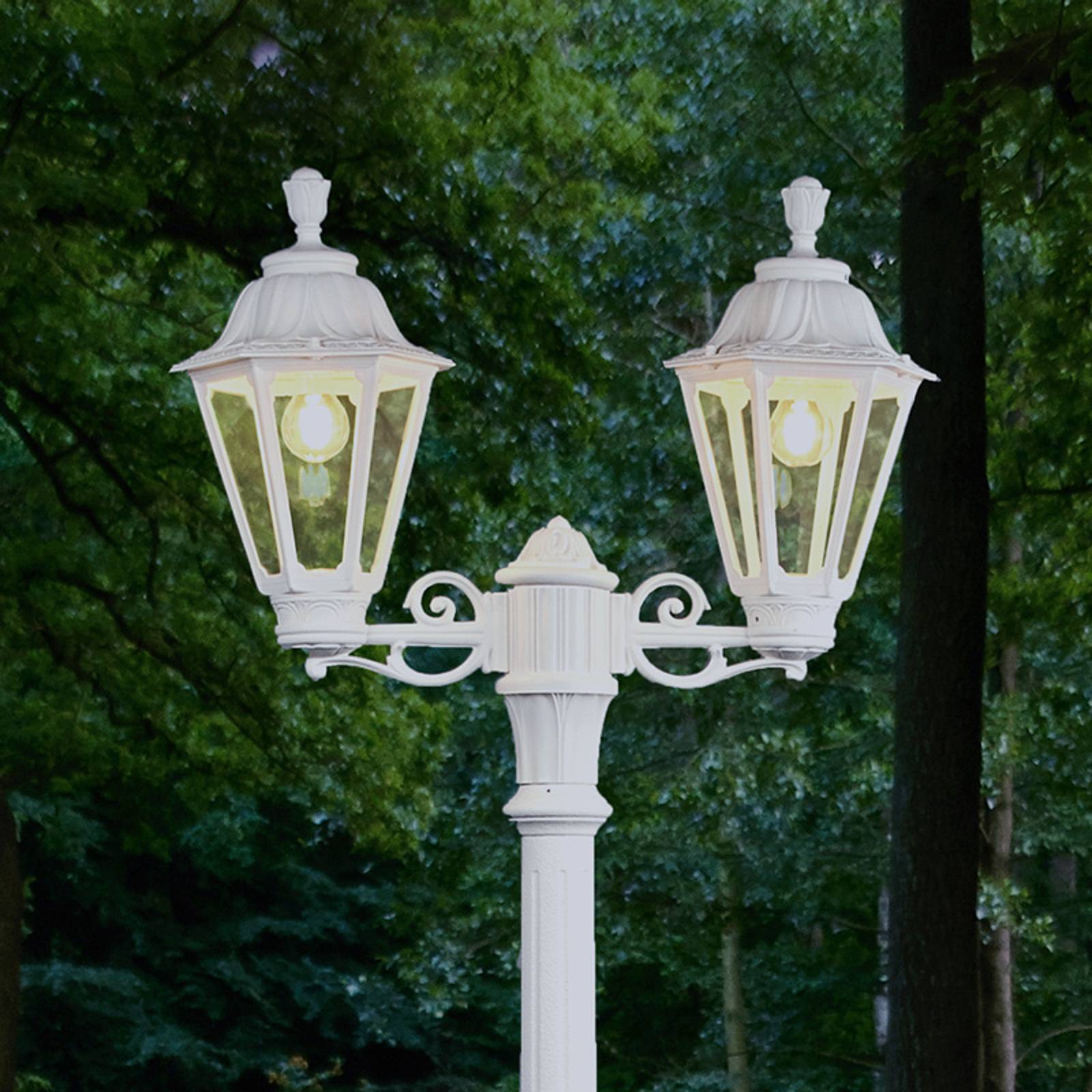 Fumagalli Bílé stožárové LED svítidlo Artu Rut, 2 zdroje E27, licí pryskyřice, PMMA, E27, 6W, L: 69 cm, K: 250cm