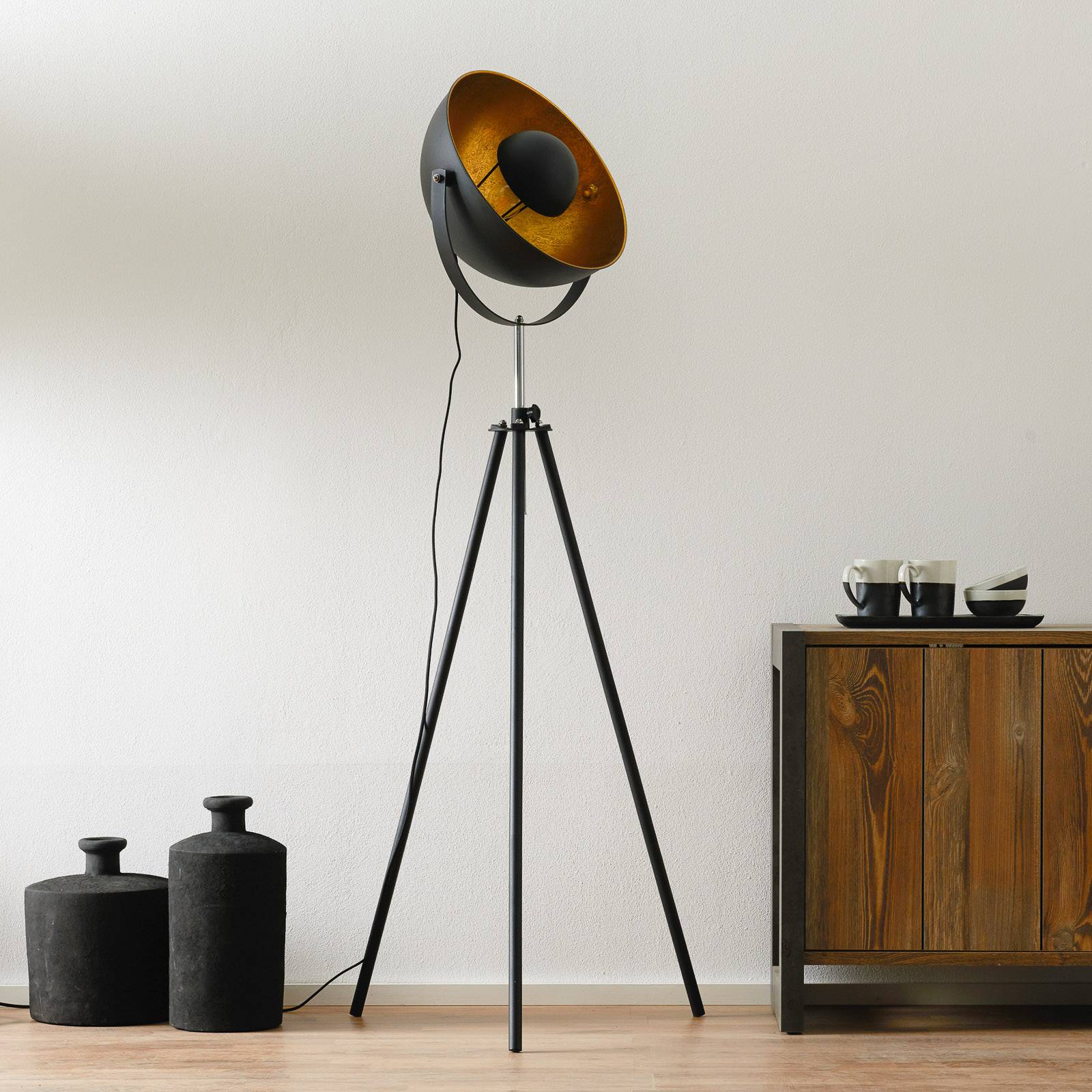 Globo Stojací lampa Lenn na třech nožkách, černo-zlatá, Obývací pokoj / jídelna, kov, E27, 60W, K: 179cm