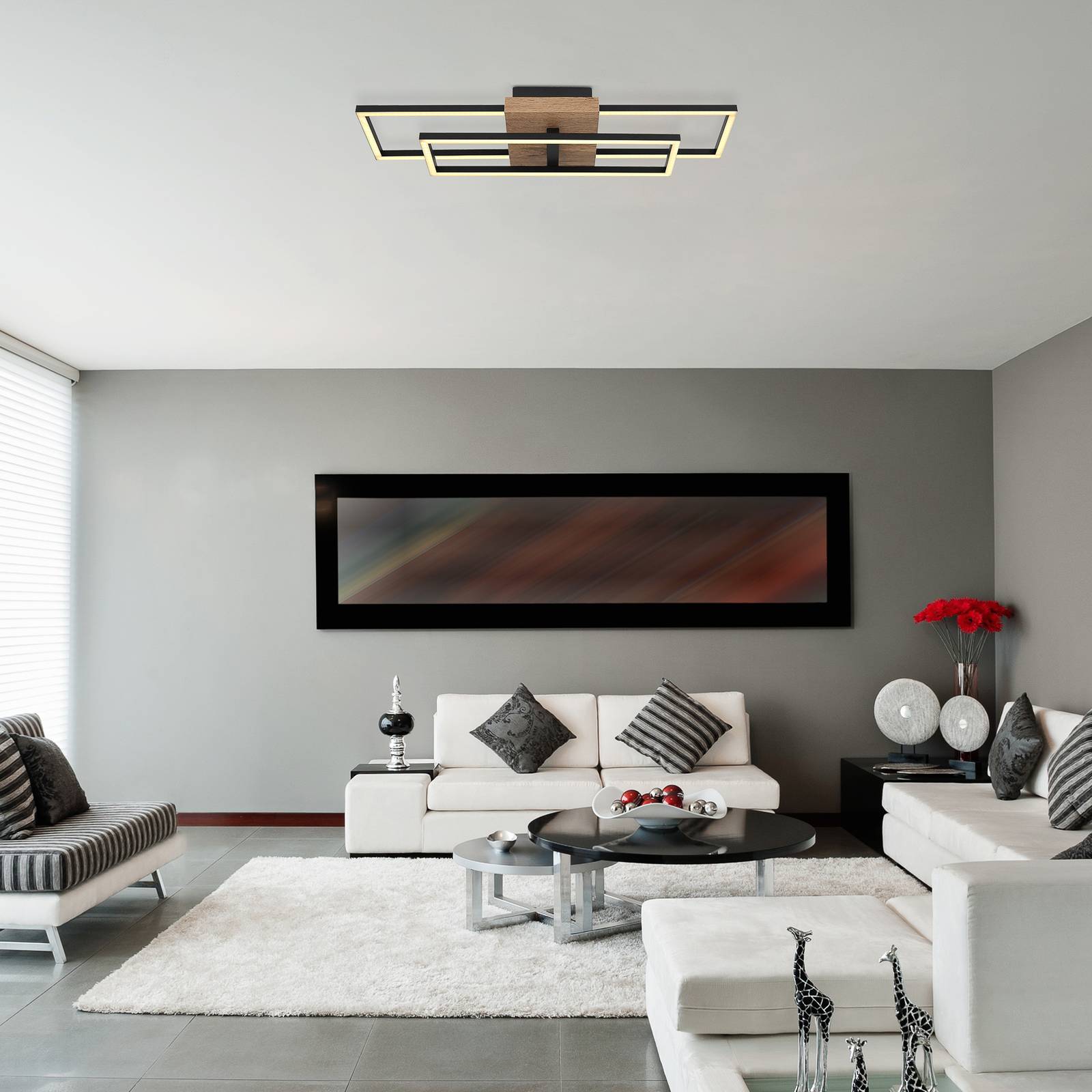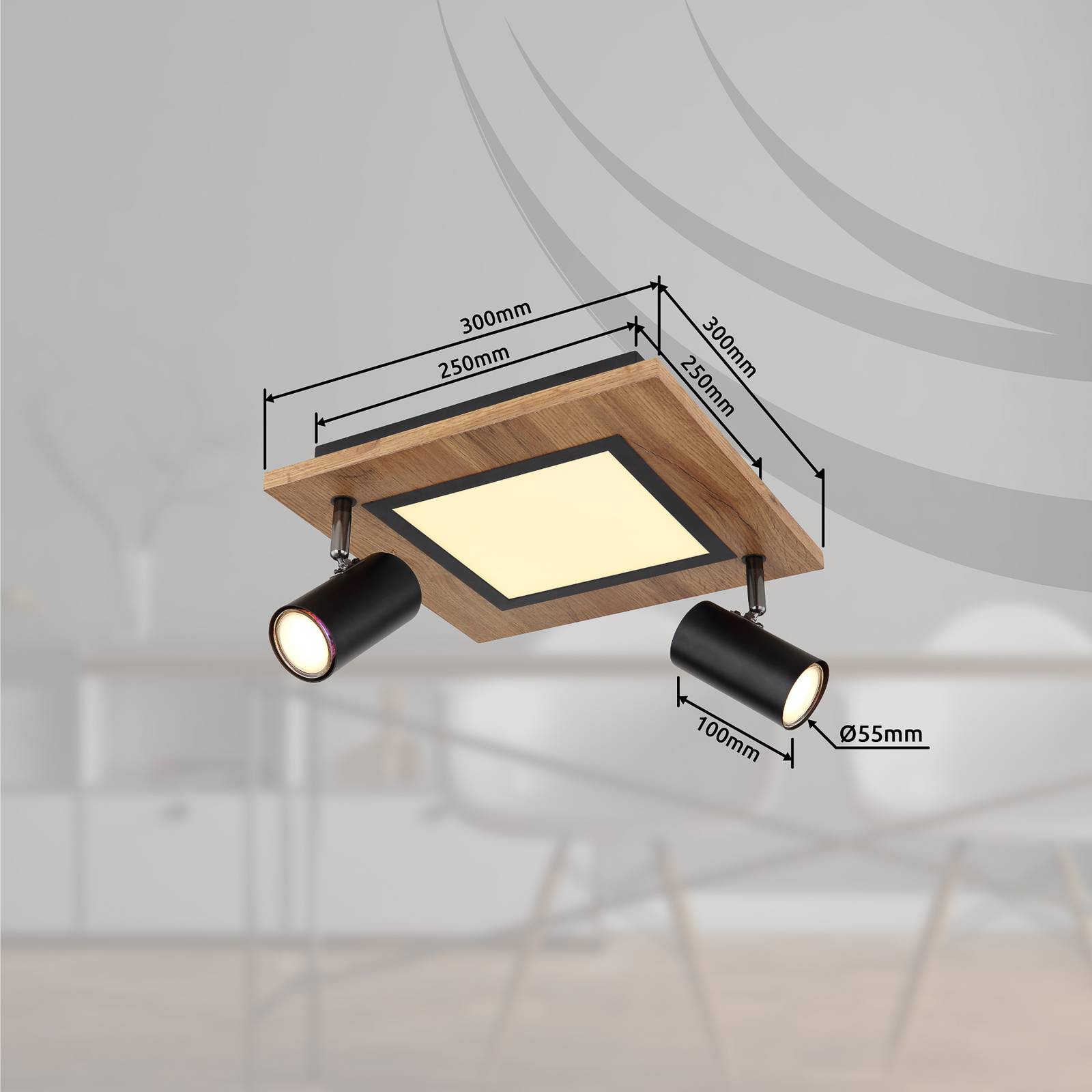 Globo Stropní svítidlo Ulla s LED diodami, 2 světla, 30x30cm, Obývací pokoj / jídelna, Kov, dřevěná dýha MDF, plast, E27, P: 30 cm, L: 30 cm, K: 18cm
