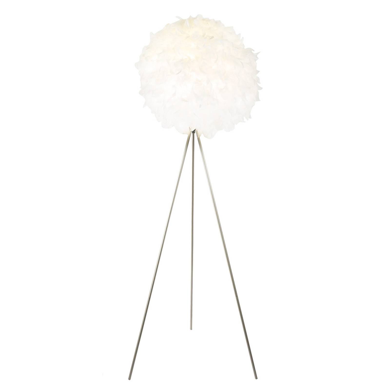 Globo Stojací lampa Katunga, třínohá, s pravým peřím, Obývací pokoj / jídelna, kov, textil, peří, E27, 40W, K: 160cm