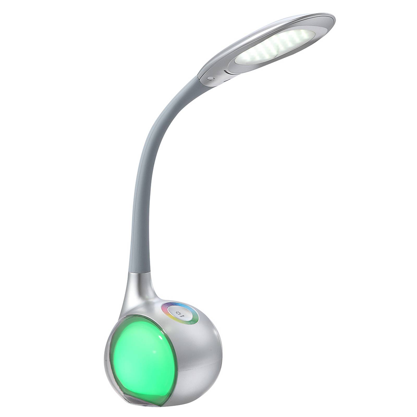 Globo Stříbrná LED stolní lampa Paula, Obývací pokoj / jídelna, plast, P: 30 cm, L: 13.5 cm, K: 53cm