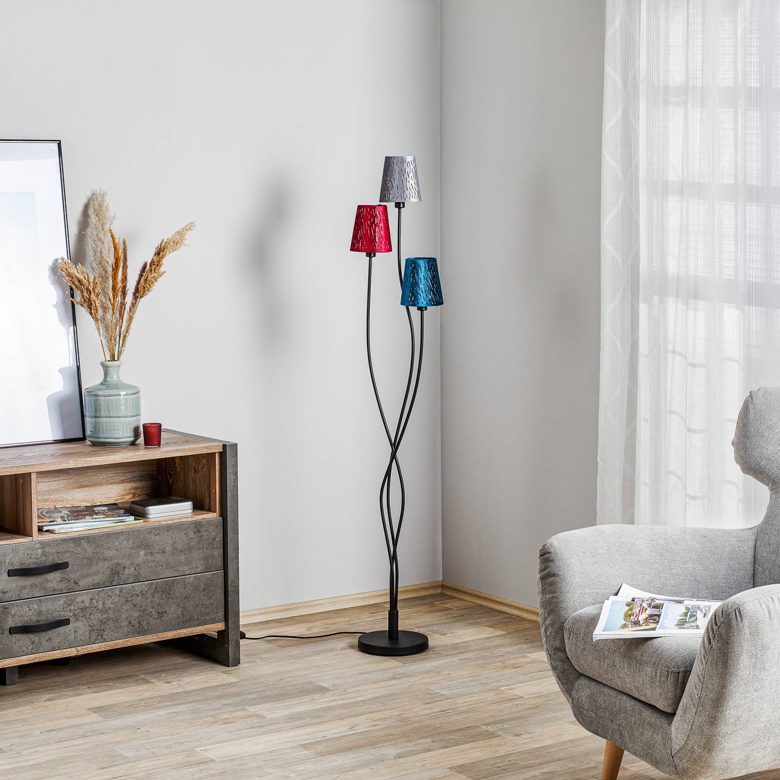 Globo Stojací lampa Ticon 3bodová, Obývací pokoj / jídelna, kov, samet, E14, 25W, K: 150cm