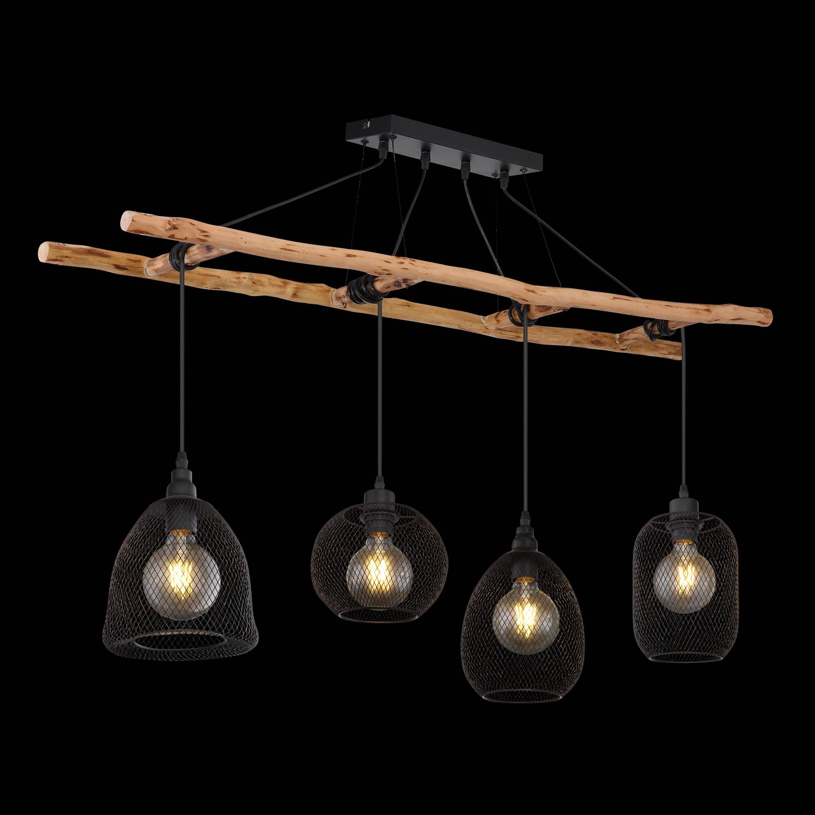 Globo Závěsné světlo Lioni ze dřeva se 4 stínidly z kovu, Obývací pokoj / jídelna, dřevo, kov, E27, 60W, P: 120 cm, L: 30 cm