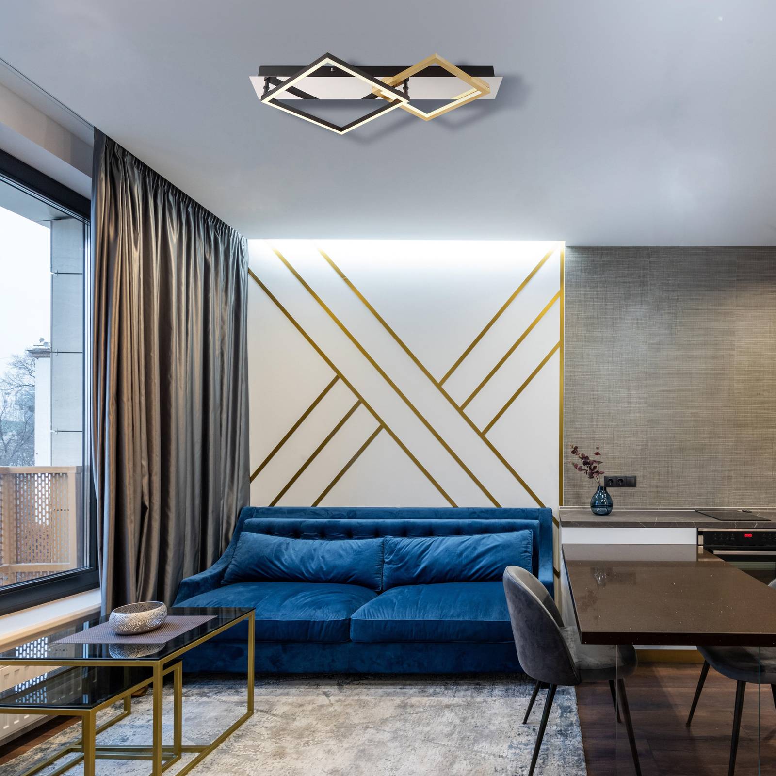 Globo Stropní svítidlo Lesina LED, 2 světla, zlatá/černá, hliník, Obývací pokoj / jídelna, Kov, hliník, plast, 24W, P: 59 cm, L: 35.5 cm, K: 7cm