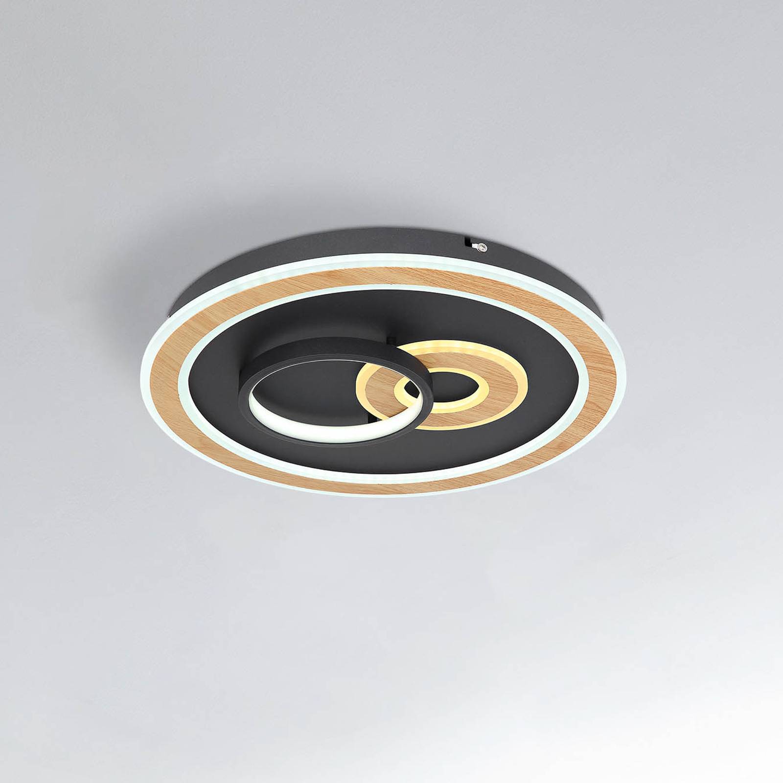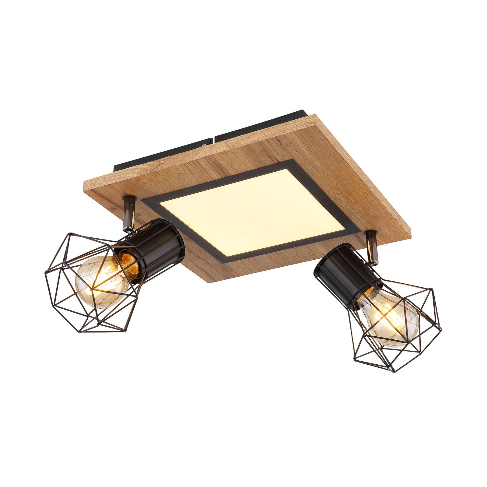 Globo Stropní světlo Priska s LED, 2 zdroje, 30x30cm, Obývací pokoj / jídelna, kov, MDF dřevěná dýha, plast, E27, P: 30 cm, L: 30 cm, K: 22.5cm