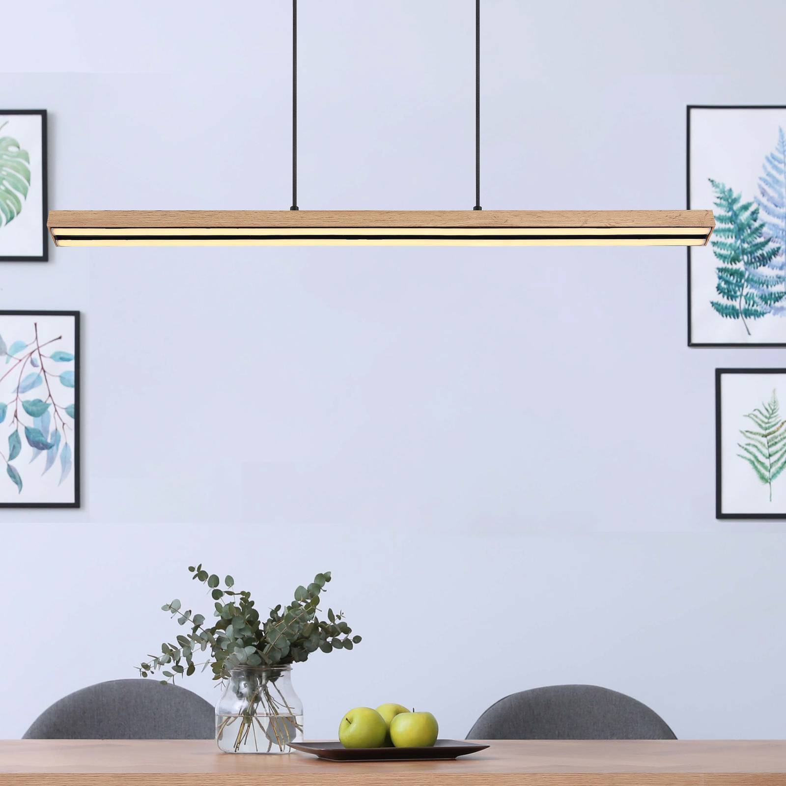 Globo Závěsné svítidlo Doro LED, délka 101, 5 cm, dub, dřevo, Obývací pokoj / jídelna, Kov, dřevěná dýha MDF, akryl, 30W, P: 101.5 cm, L: 7.5 cm, K: 3cm
