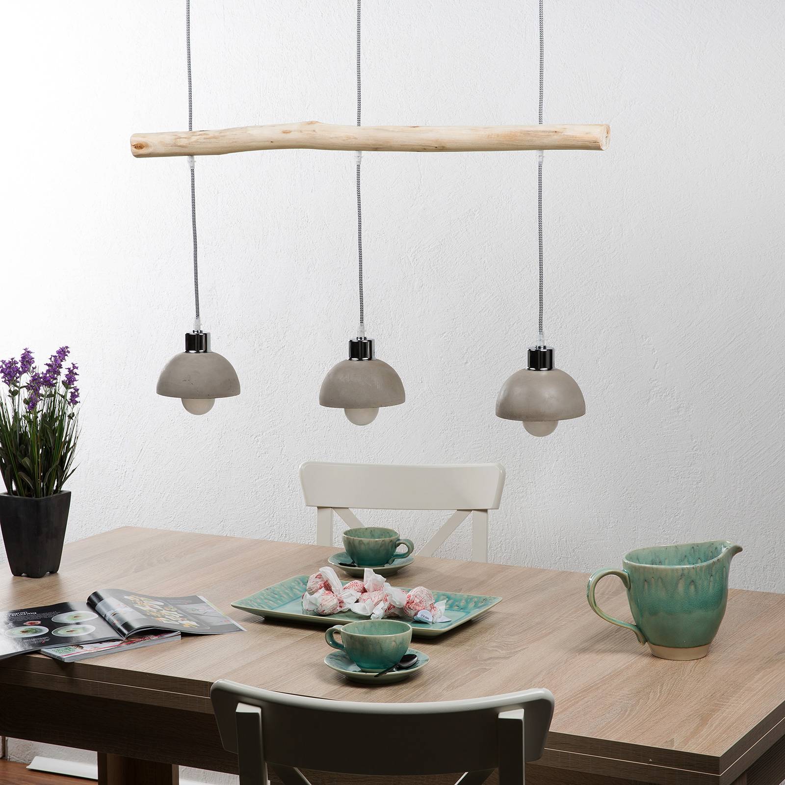 Globo Tříbodové závěsné svítidlo Jebel, stínidla beton, Obývací pokoj / jídelna, kov, beton, dřevo, E27, 40W, P: 85 cm, L: 15 cm