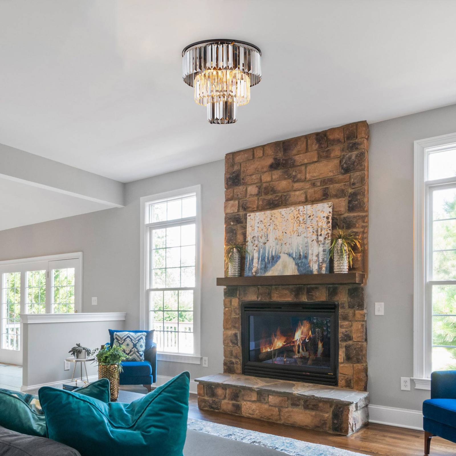 Globo Stropní svítidlo Naxis, kouřově šedé/čiré, Ø 40 cm, křišťál, Obývací pokoj / jídelna, Skleněné krystaly, kov, E27, 40W, K: 33cm