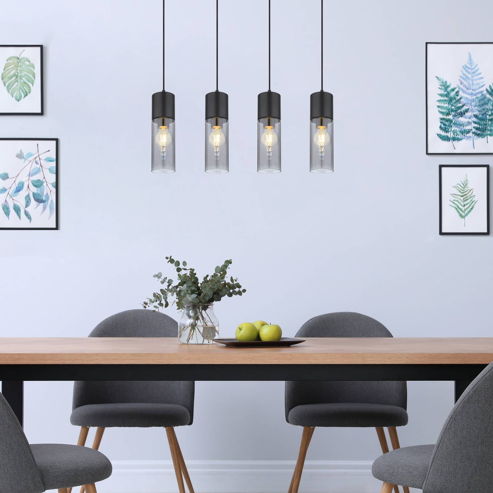 Globo Závěsné světlo Annika, 4 zdroje, černá, Obývací pokoj / jídelna, kov, sklo, E27, 25W, P: 80 cm, L: 9 cm