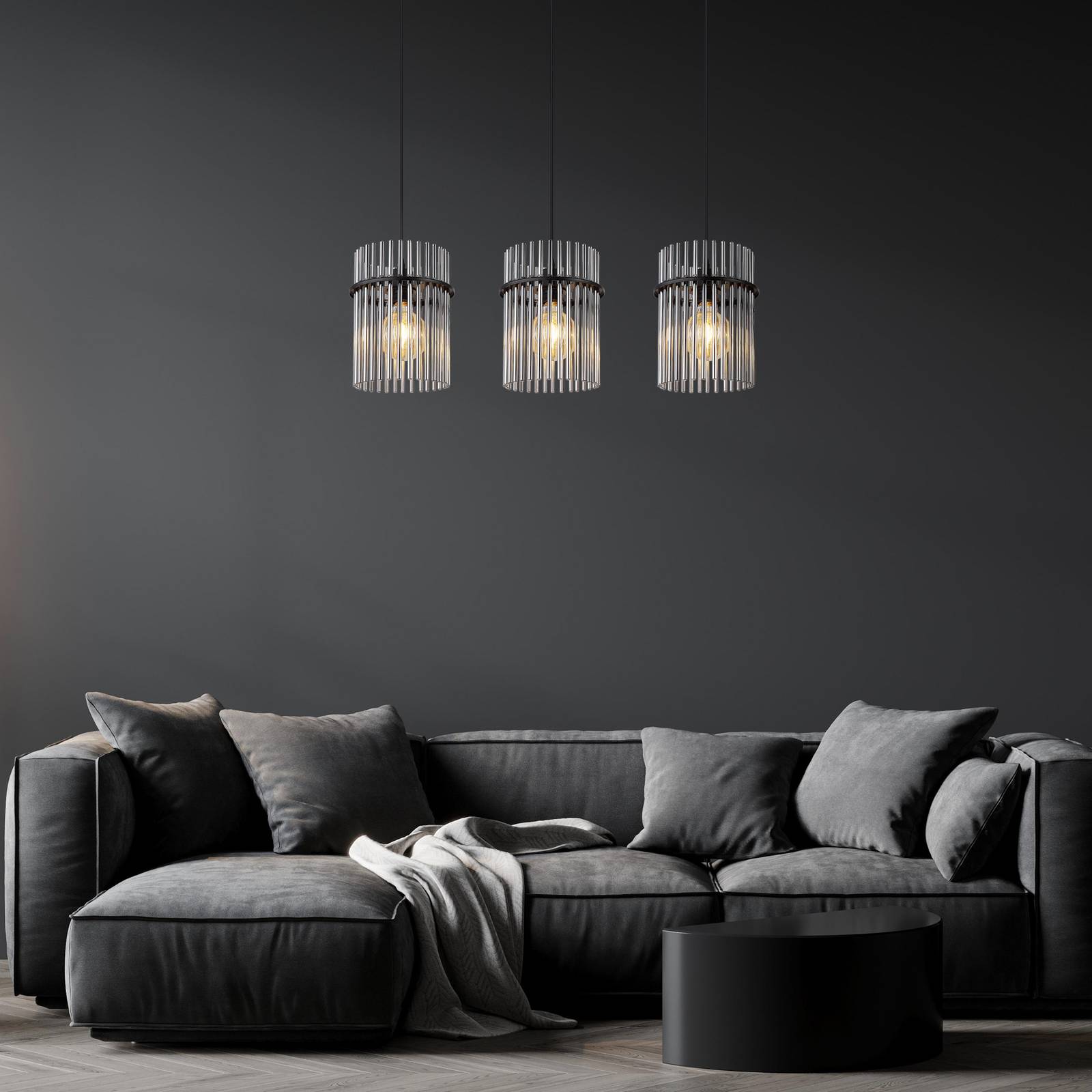 Globo Závěsné svítidlo Gorley, délka 80 cm, kouřově šedá, 3 světla, sklo, Obývací pokoj / jídelna, Sklo, kov, E27, 60W, P: 80 cm, L: 20 cm