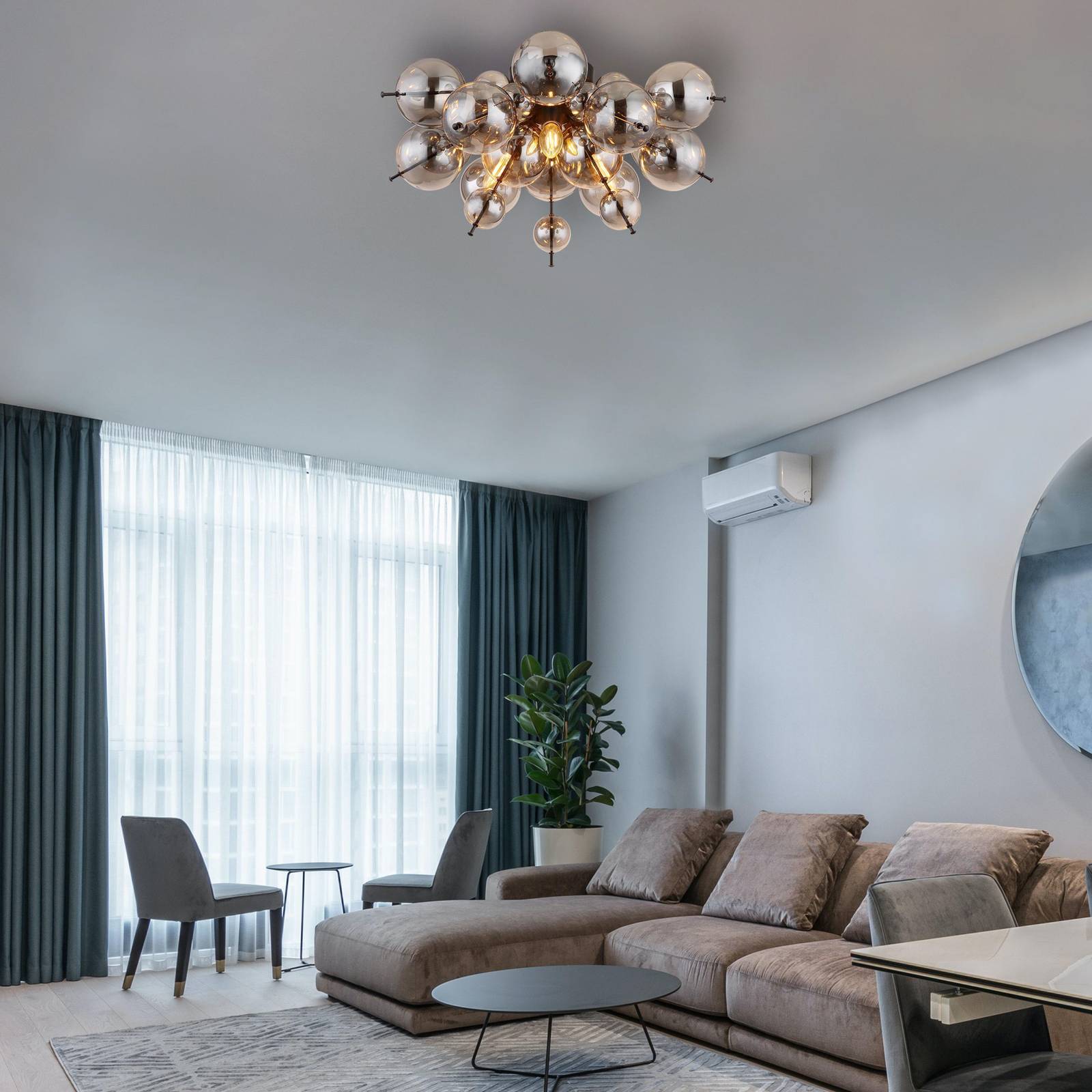 Globo Stropní svítidlo Udo, kouřově šedé, Ø 55 cm, sklo, Obývací pokoj / jídelna, Sklo, kov, E14, 25W, K: 28cm