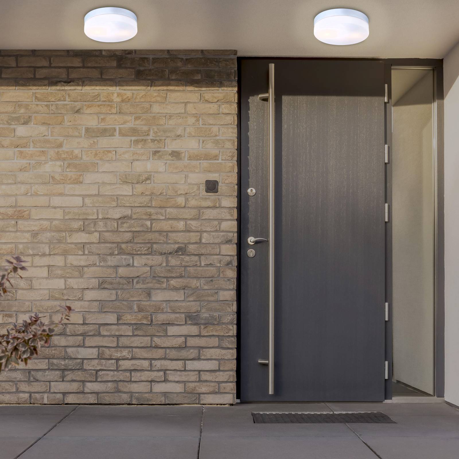 Globo Venkovní stropní svítidlo Vranos, stříbrná barva, Ø 24 cm, hliník, Hliník, sklo, E27, 60W, K: 6.5cm