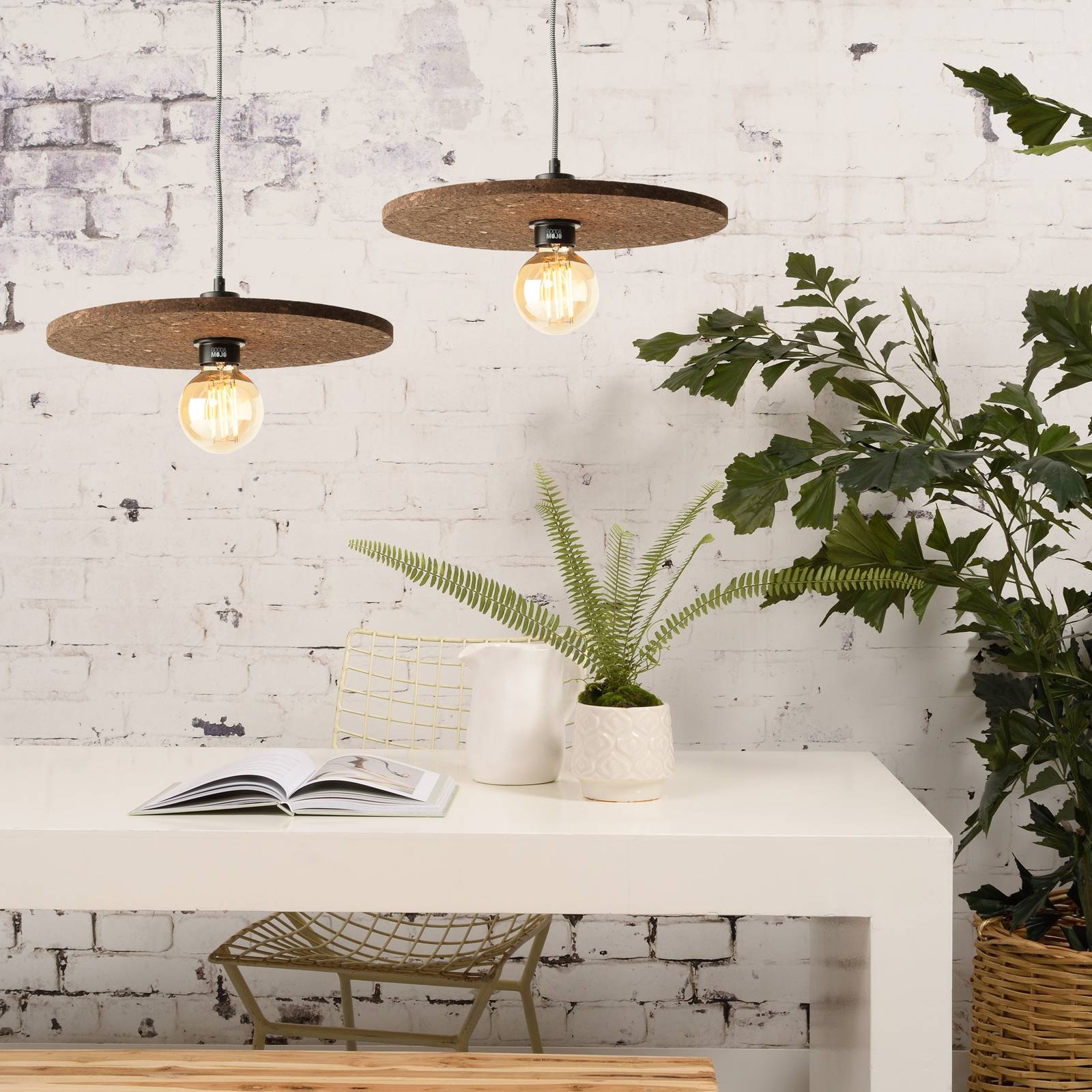Good & Mojo GOOD MOJO Algarve závěsné světlo, tmavě hnědá, Obývací pokoj / jídelna, korek, železo, tkanina, E27, 40W, K: 1.5cm