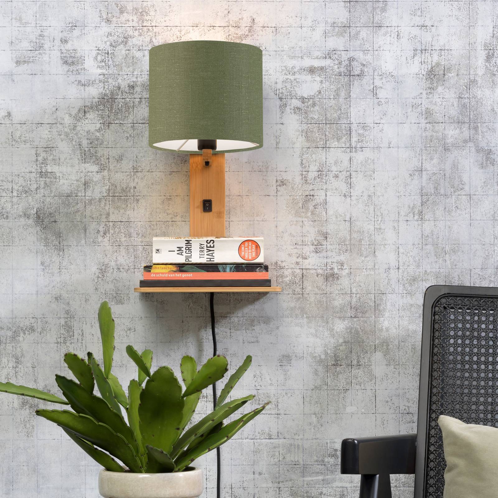 Good & Mojo GOOD MOJO Andes nástěnné světlo, zelená/přírodní, Obývací pokoj / jídelna, bambus, Eco len, E14, 40W, L: 16 cm, K: 36cm
