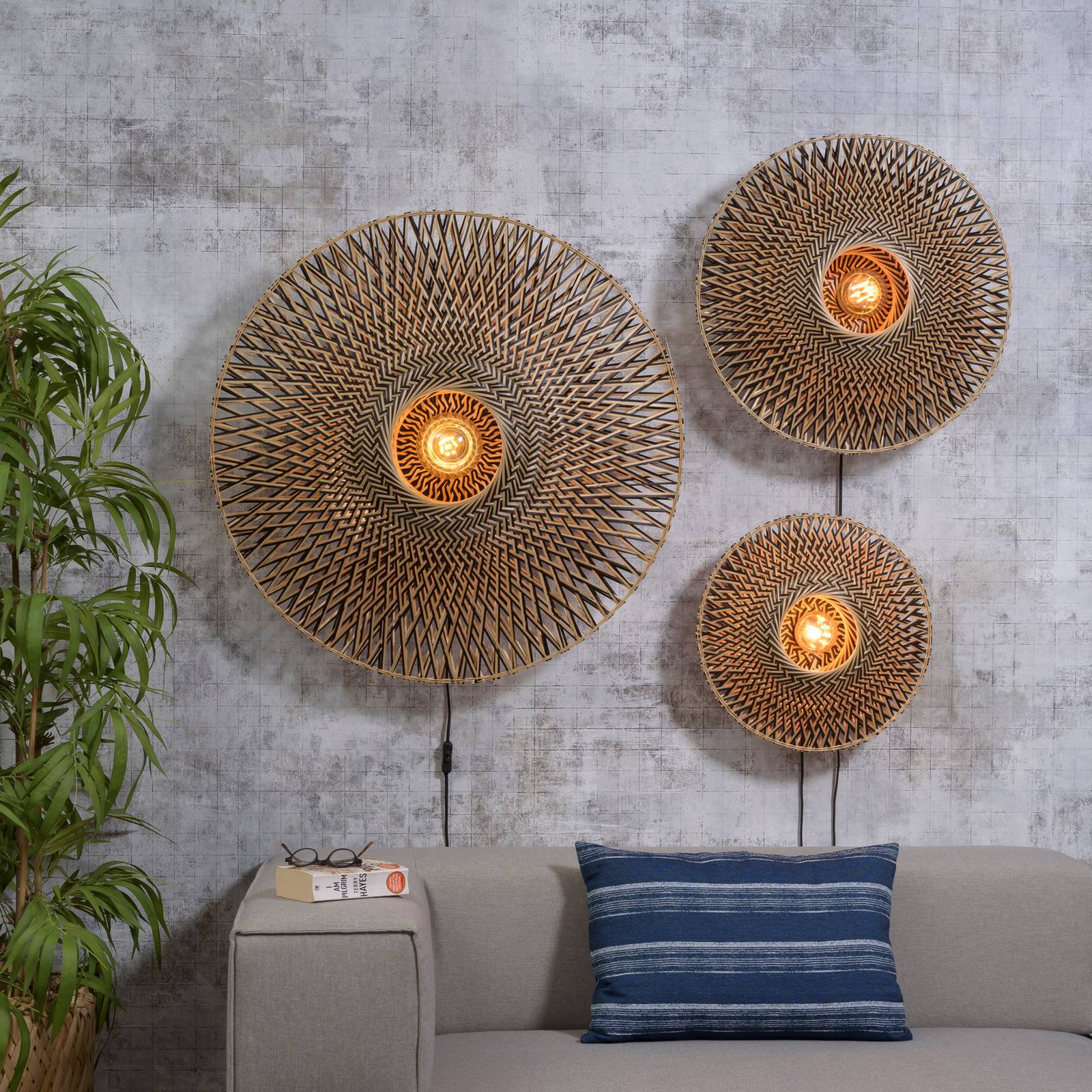 Good & Mojo Nástěnné svítidlo GOOD MOJO Bali z bambusu, Ø 44 cm, Obývací pokoj / jídelna, Bambus, železo, E27, 60W